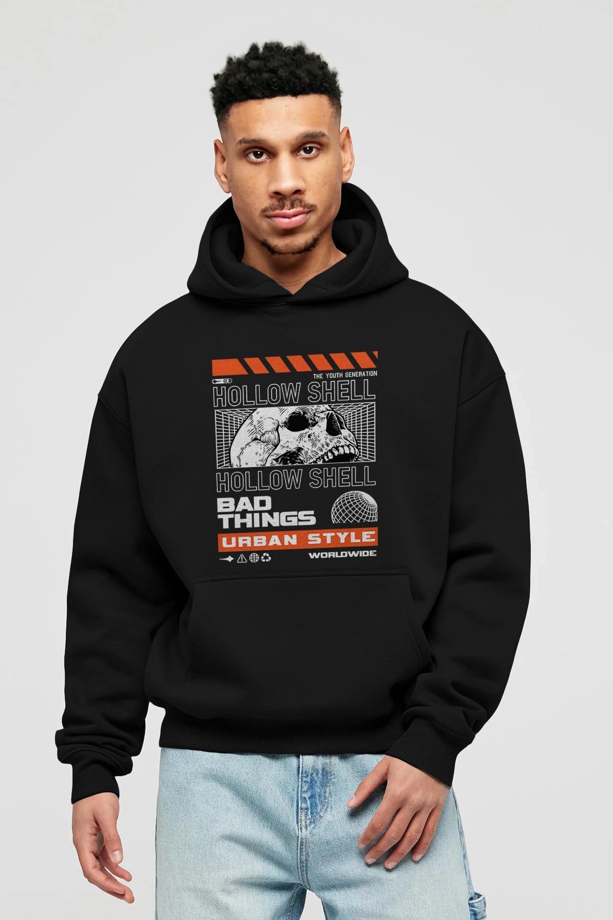Hollow Shell Ön Baskılı Hoodie Oversize Kapüşonlu Sweatshirt Erkek Kadın Unisex