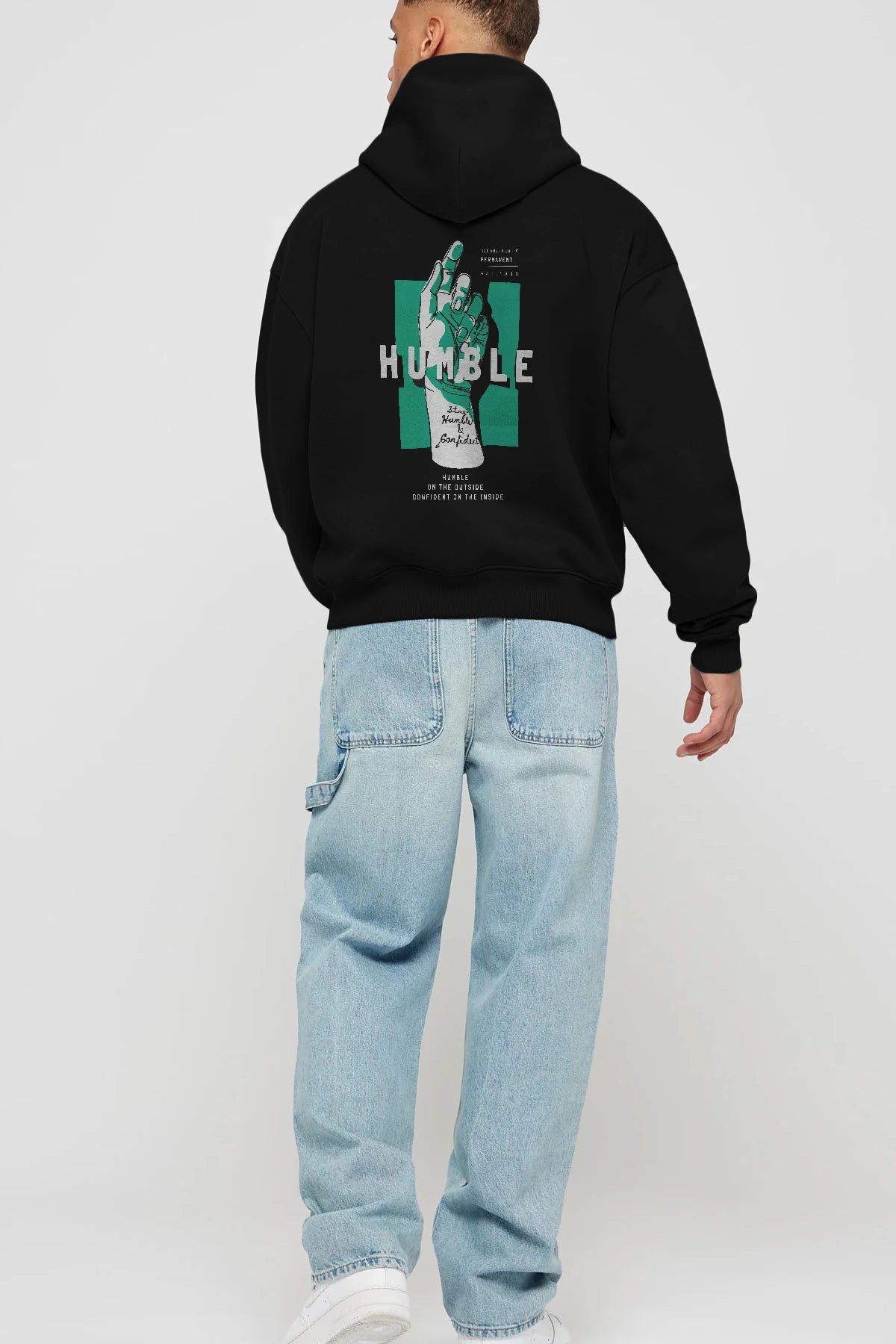 Humble Arka Baskılı Hoodie Oversize Kapüşonlu Sweatshirt Erkek Kadın Unisex