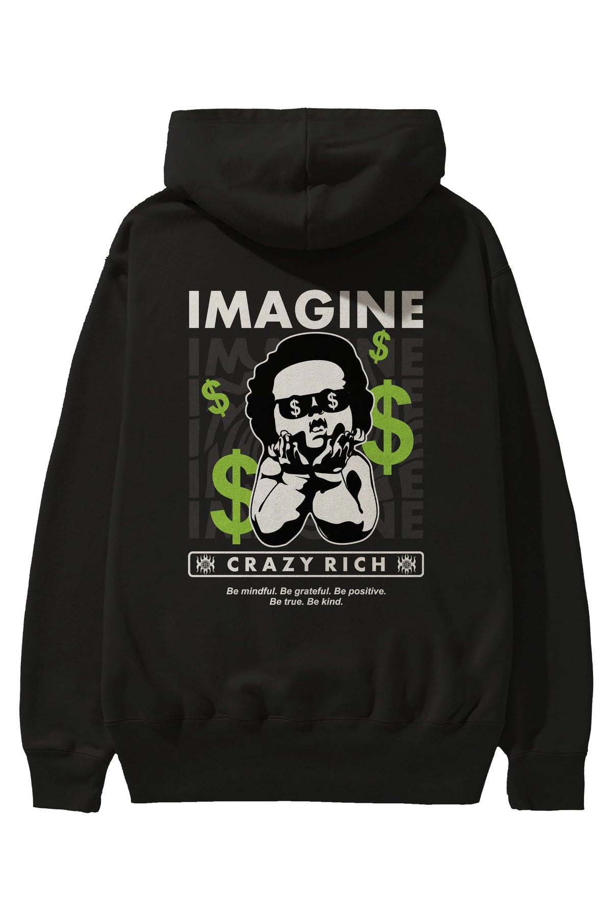 Imagine Crazy Rich Arka Baskılı Hoodie Oversize Kapüşonlu Sweatshirt Erkek Kadın Unisex