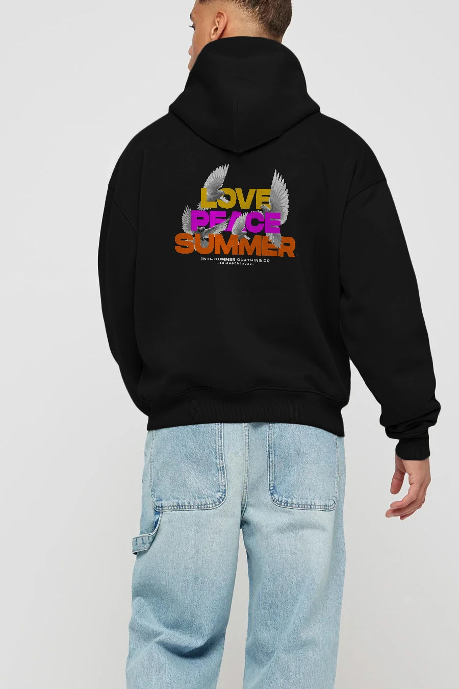 Love Peace Summer Arka Baskılı Hoodie Oversize Kapüşonlu Sweatshirt Erkek Kadın Unisex
