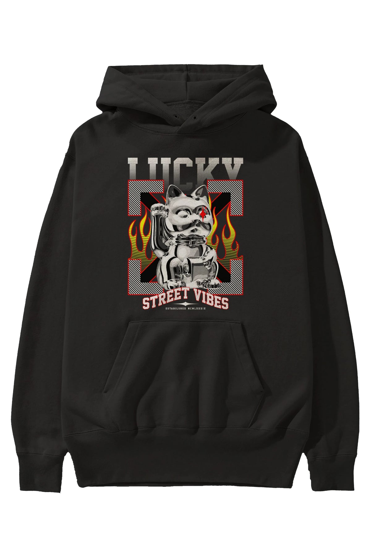 Lucky Street Vibes Ön Baskılı Hoodie Oversize Kapüşonlu Sweatshirt Erkek Kadın Unisex