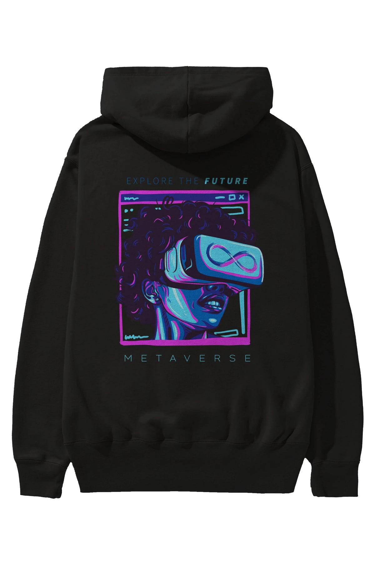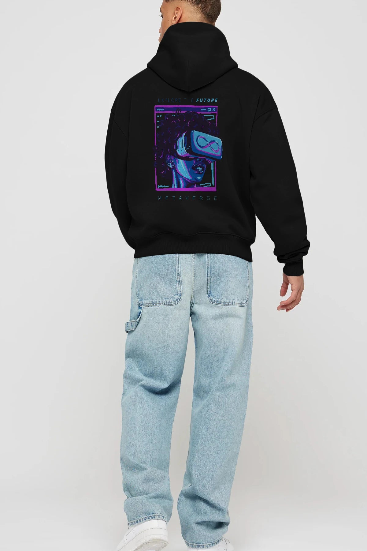 Metaverse Arka Baskılı Hoodie Oversize Kapüşonlu Sweatshirt Erkek Kadın Unisex