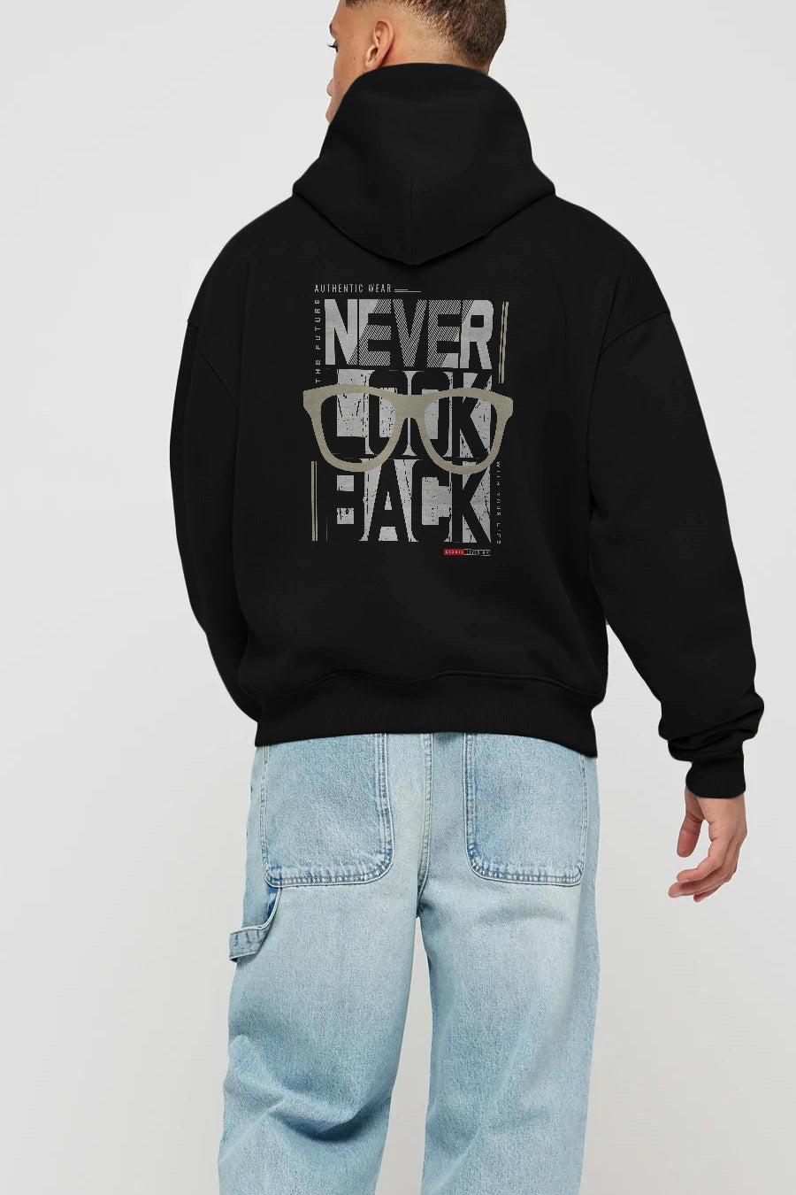 Never Look Back Arka Baskılı Hoodie Oversize Kapüşonlu Sweatshirt Erkek Kadın Unisex