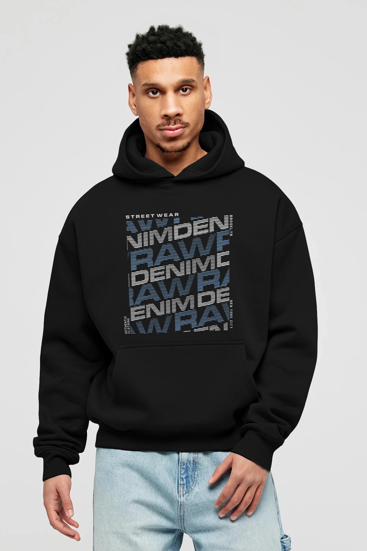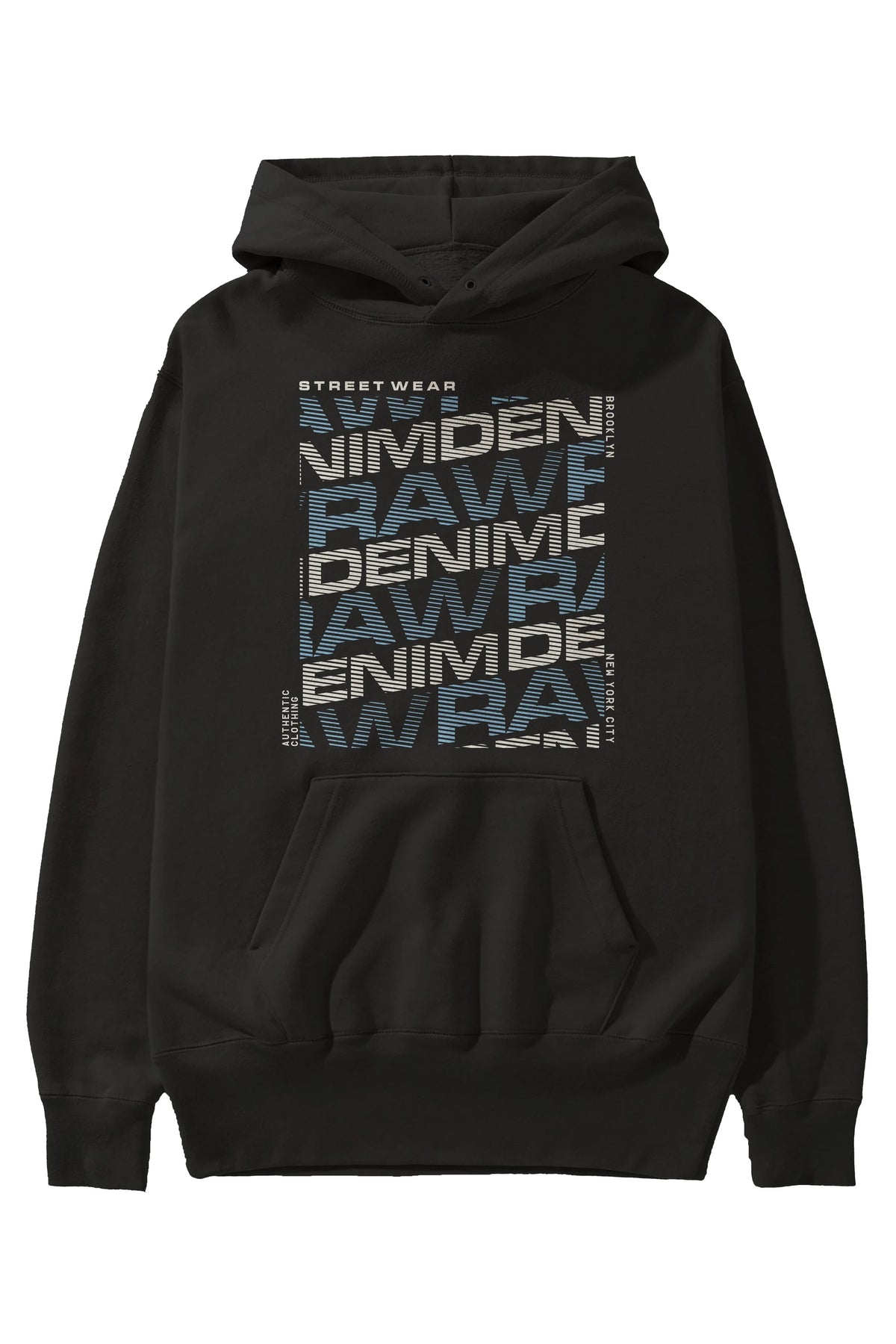 Raw Denim Ön Baskılı Hoodie Oversize Kapüşonlu Sweatshirt Erkek Kadın Unisex