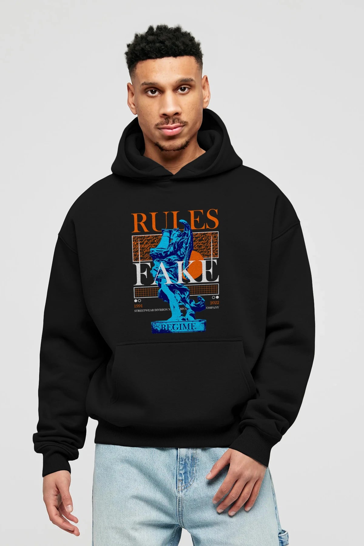 Rules Fake Ön Baskılı Hoodie Oversize Kapüşonlu Sweatshirt Erkek Kadın Unisex