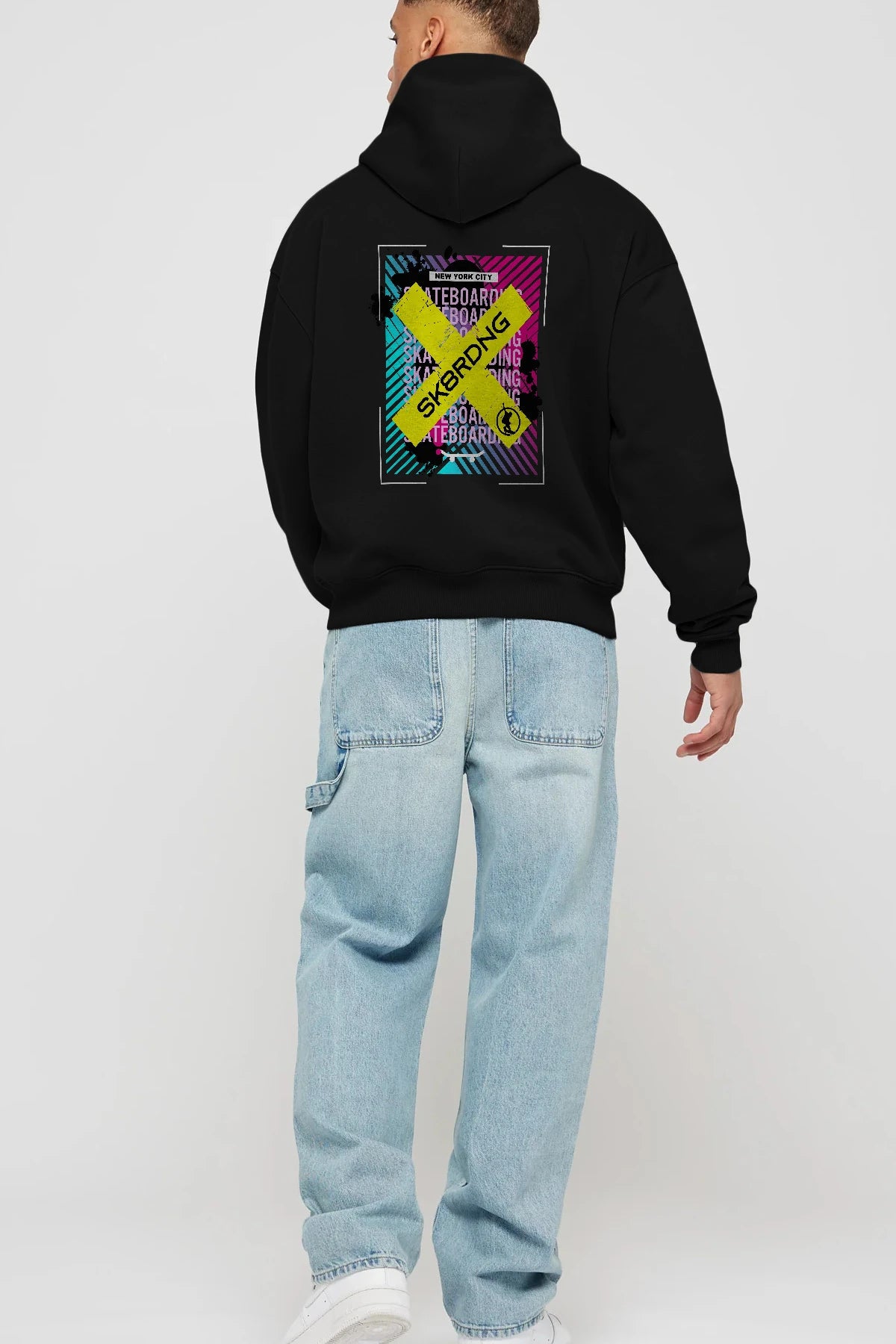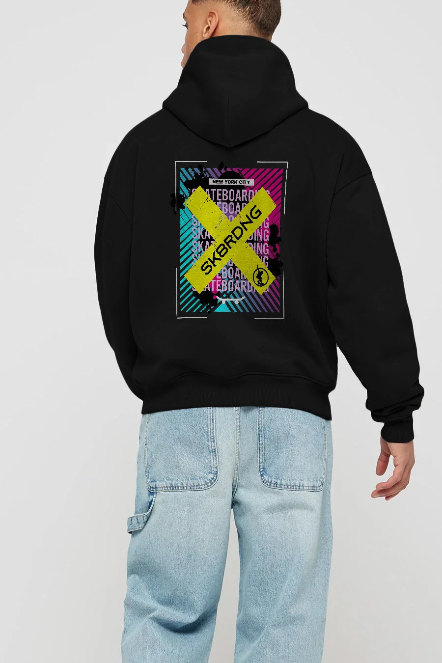 Skatebording Arka Baskılı Hoodie Oversize Kapüşonlu Sweatshirt Erkek Kadın Unisex