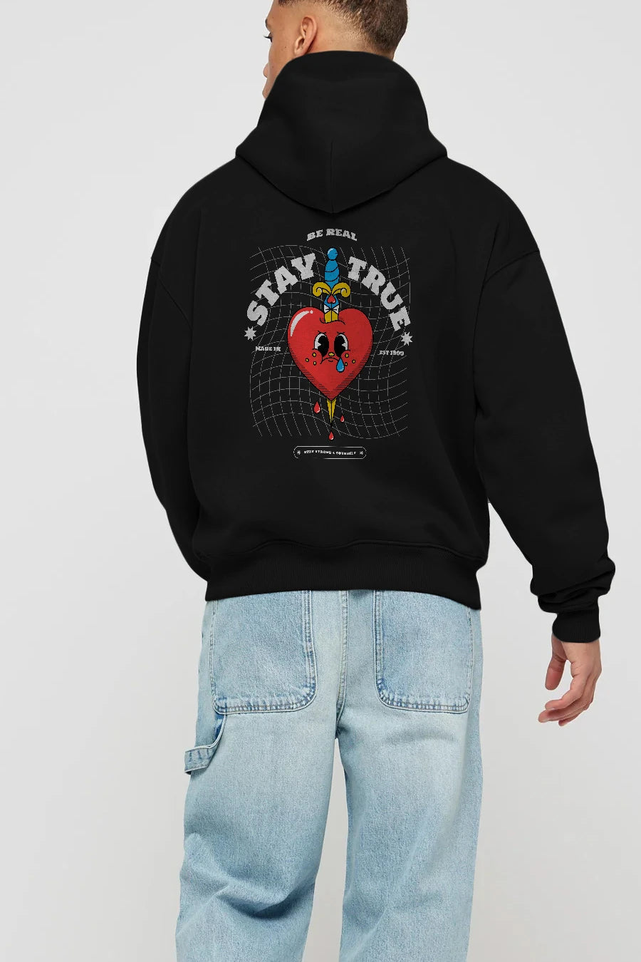 Stay True Arka Baskılı Hoodie Oversize Kapüşonlu Sweatshirt Erkek Kadın Unisex