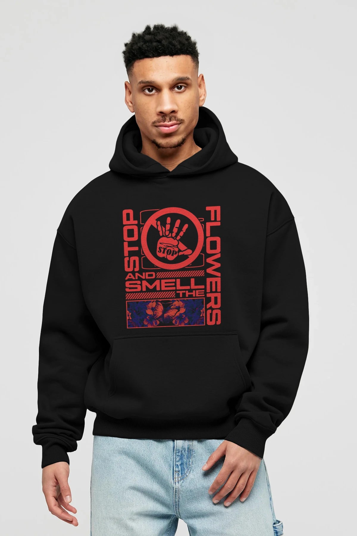 Stop and smell the flowers Ön Baskılı Hoodie Oversize Kapüşonlu Sweatshirt Erkek Kadın Unisex