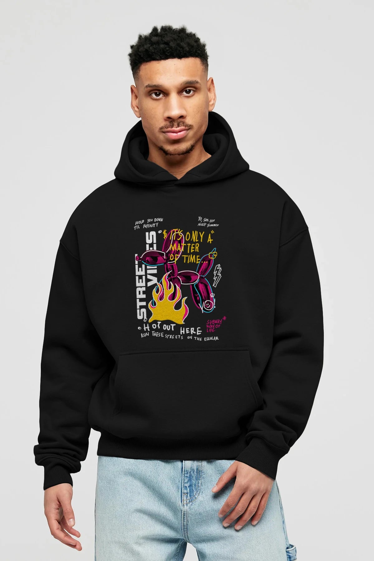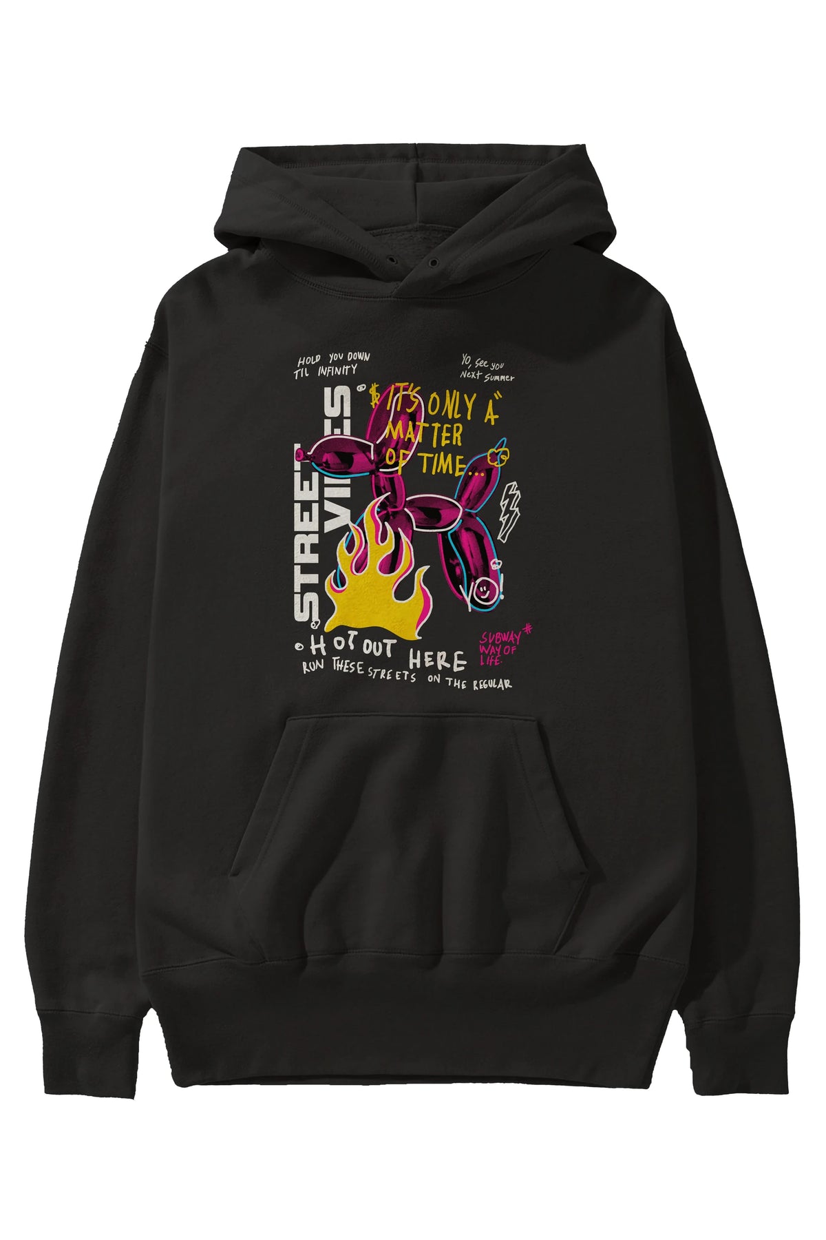 Street Vibes Ön Baskılı Hoodie Oversize Kapüşonlu Sweatshirt Erkek Kadın Unisex