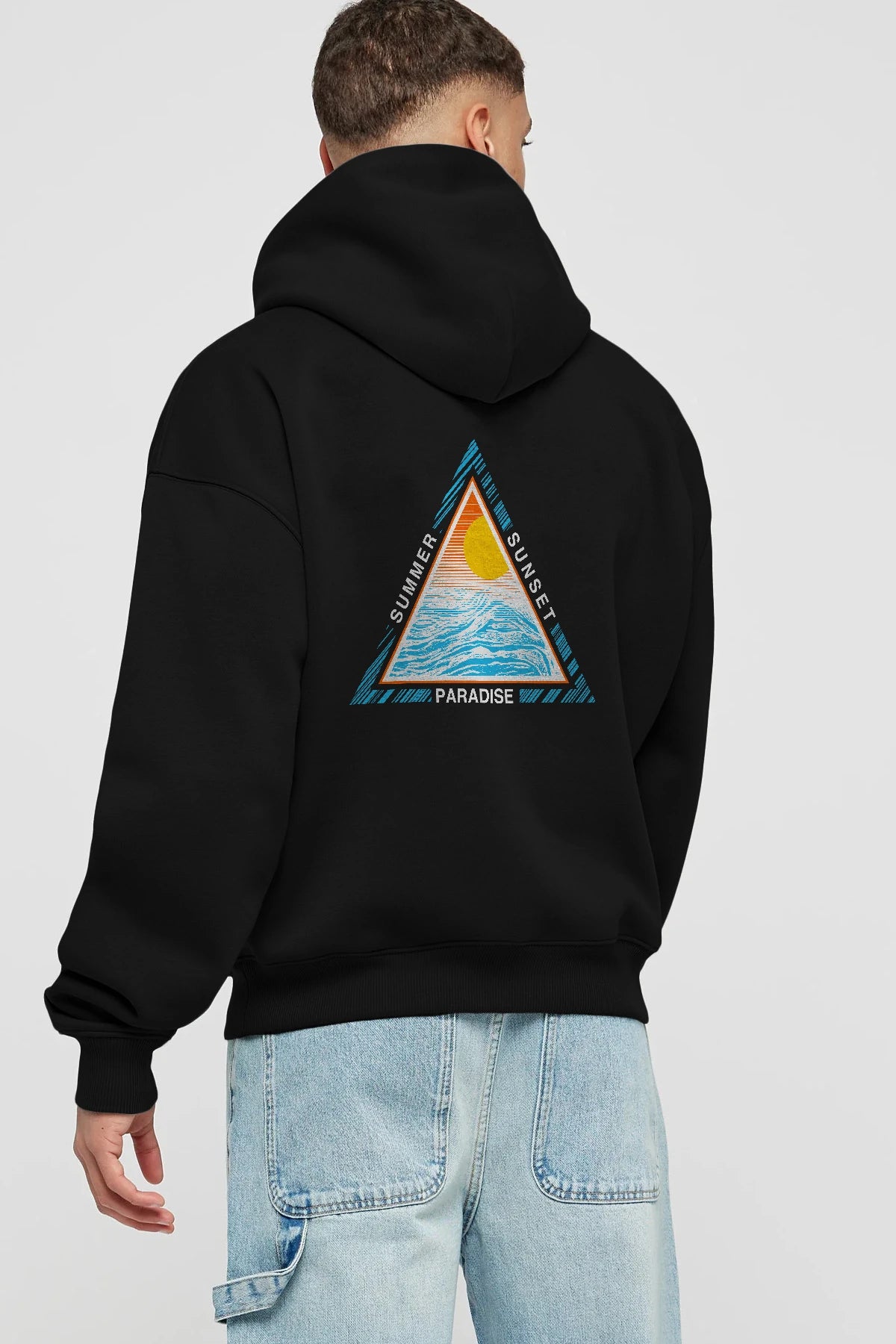 Summer Sunset Paradise Arka Baskılı Hoodie Oversize Kapüşonlu Sweatshirt Erkek Kadın Unisex