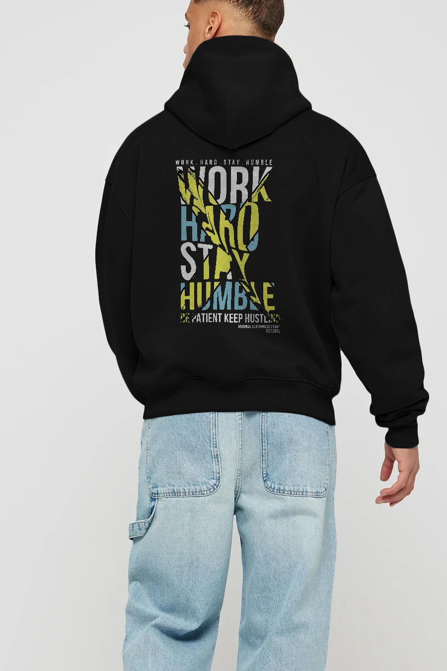 Work Hard Stay Humble Arka Baskılı Hoodie Oversize Kapüşonlu Sweatshirt Erkek Kadın Unisex