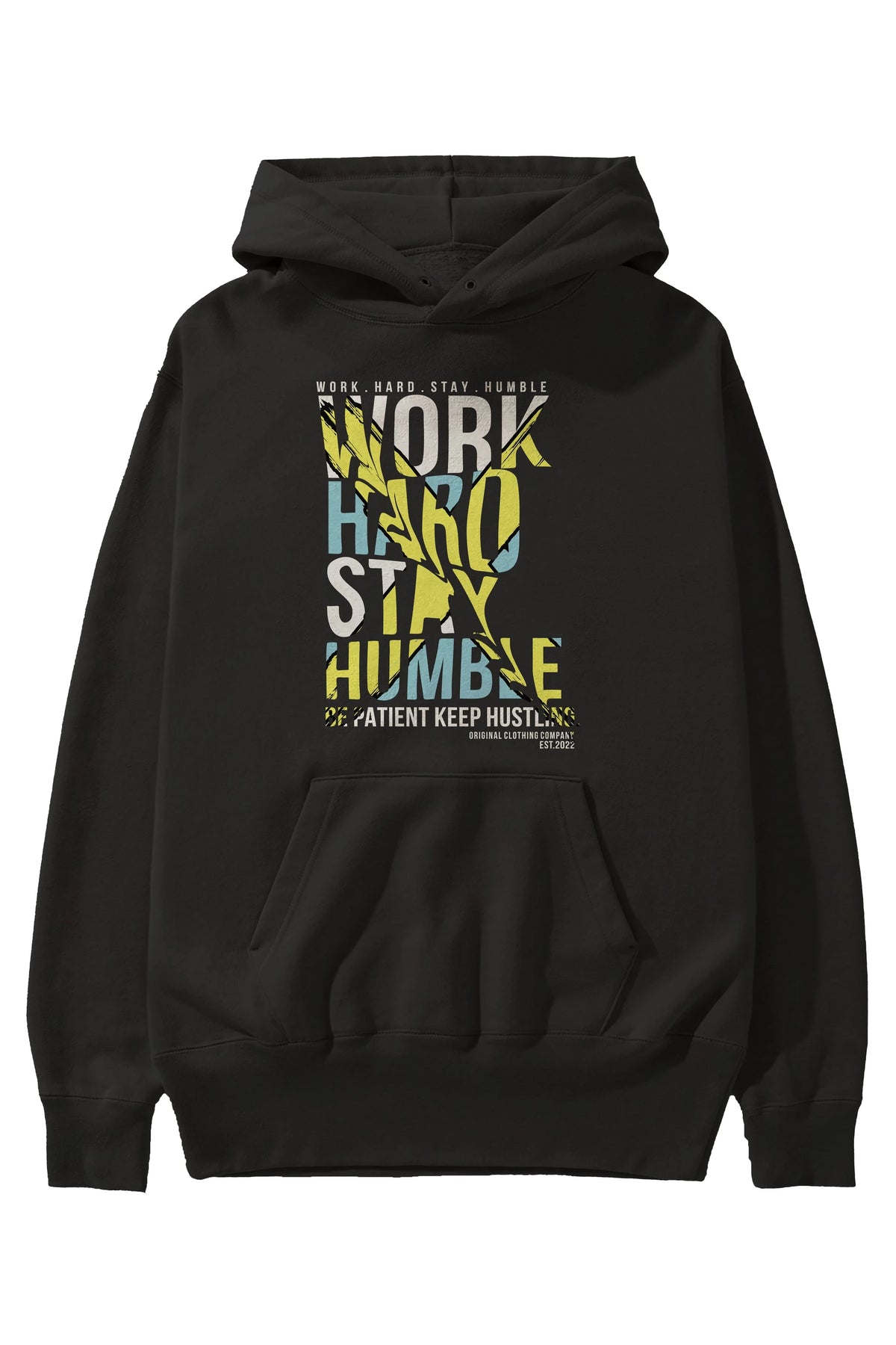 Work Hard Stay Humble Ön Baskılı Hoodie Oversize Kapüşonlu Sweatshirt Erkek Kadın Unisex