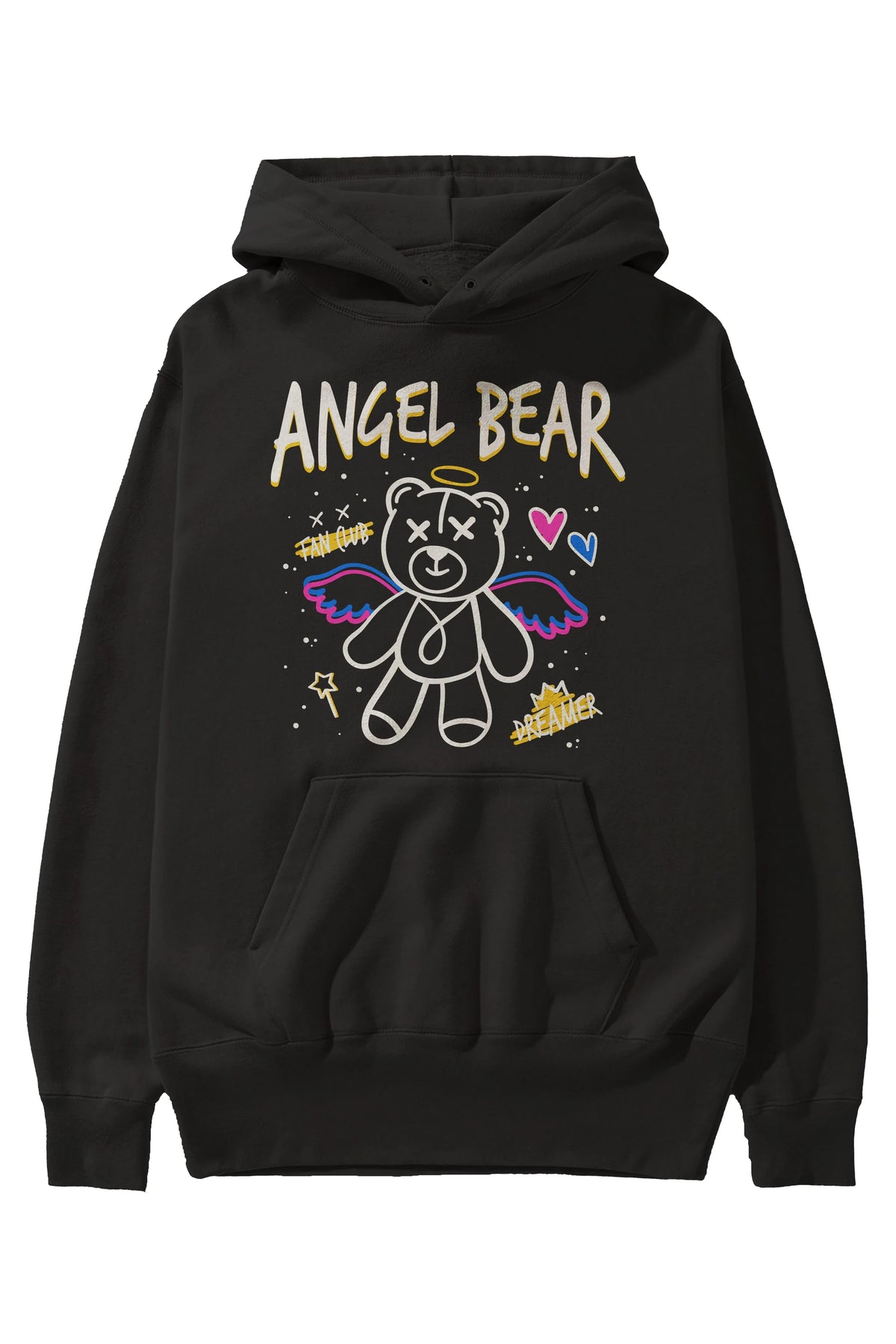 Angel Bear Ön Baskılı Hoodie Oversize Kapüşonlu Sweatshirt Erkek Kadın Unisex