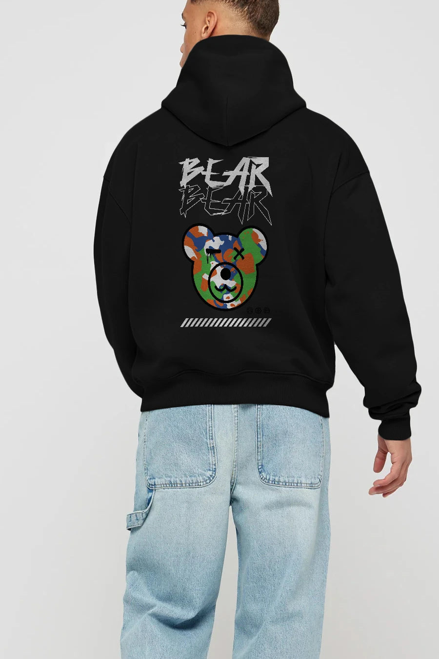 Bear Bear Arka Baskılı Hoodie Oversize Kapüşonlu Sweatshirt Erkek Kadın Unisex