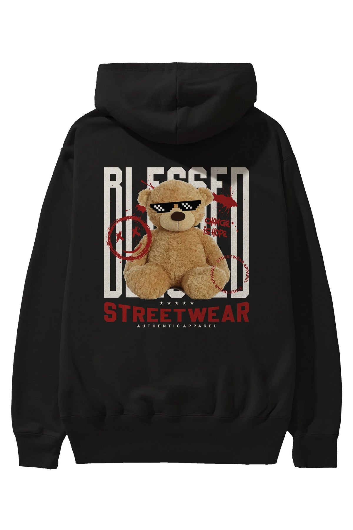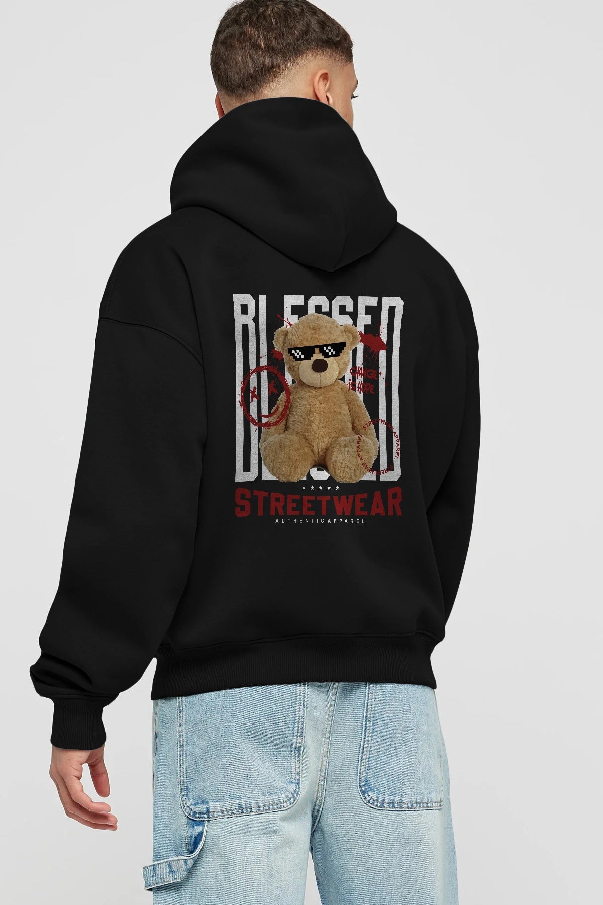 Blessed Bear Arka Baskılı Hoodie Oversize Kapüşonlu Sweatshirt Erkek Kadın Unisex