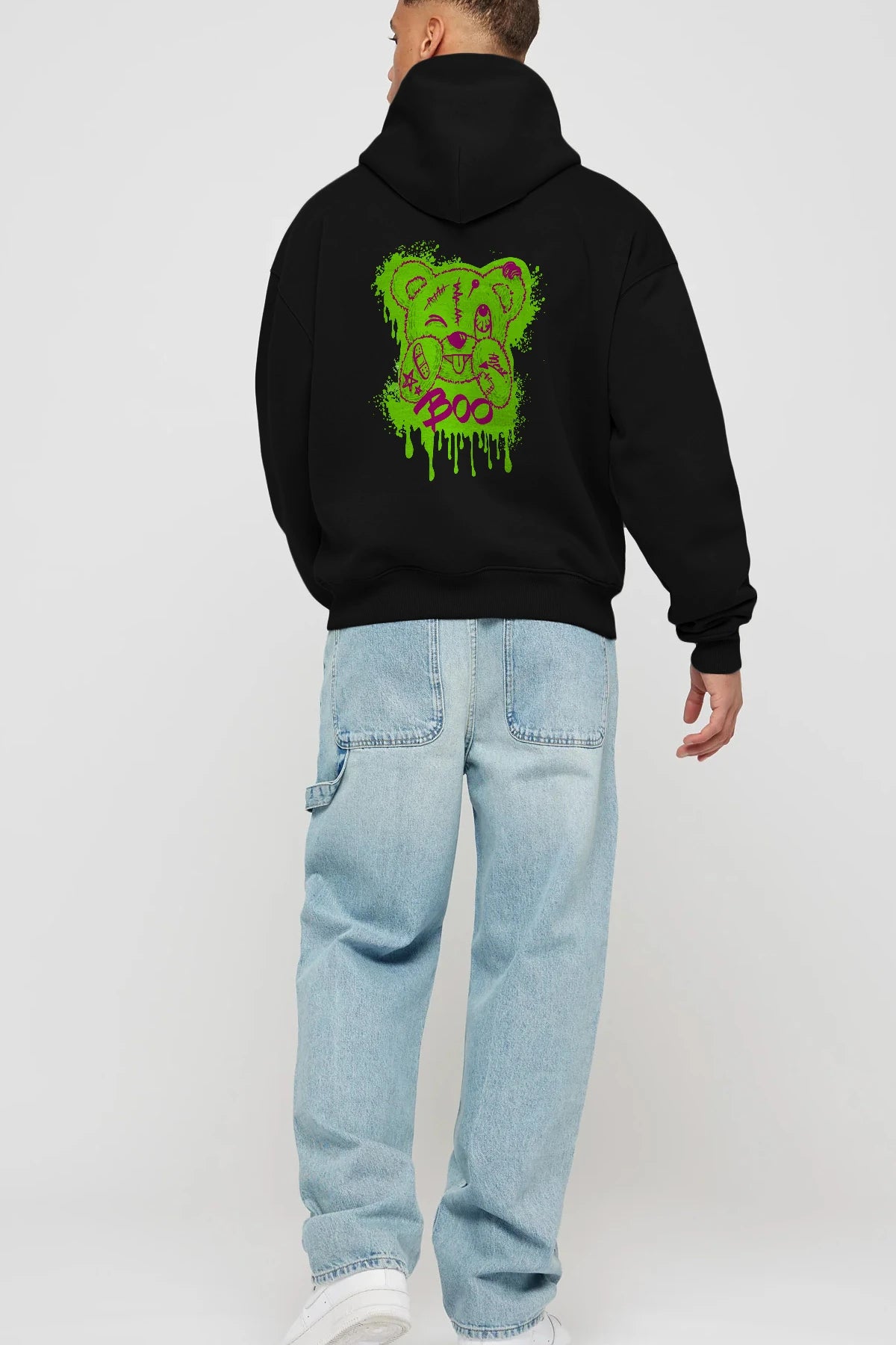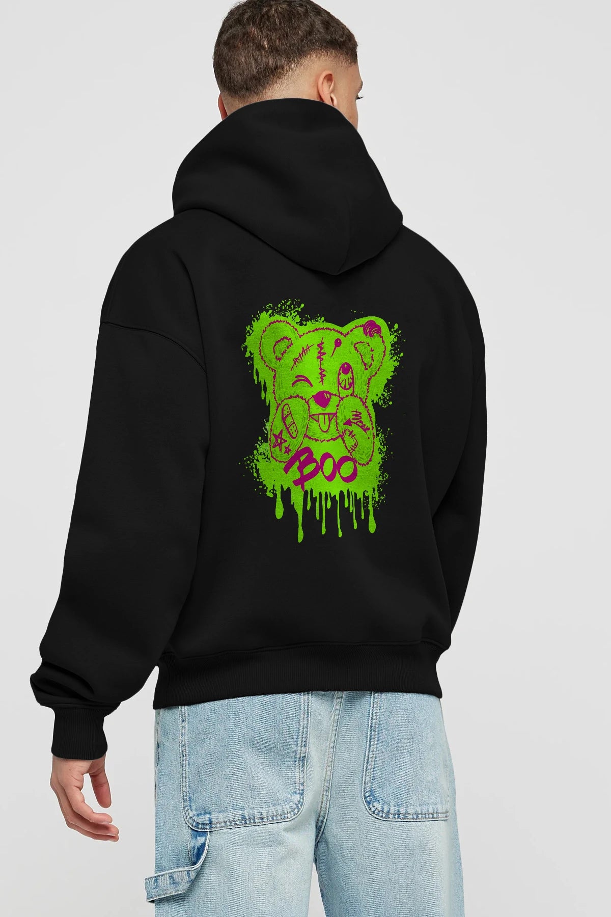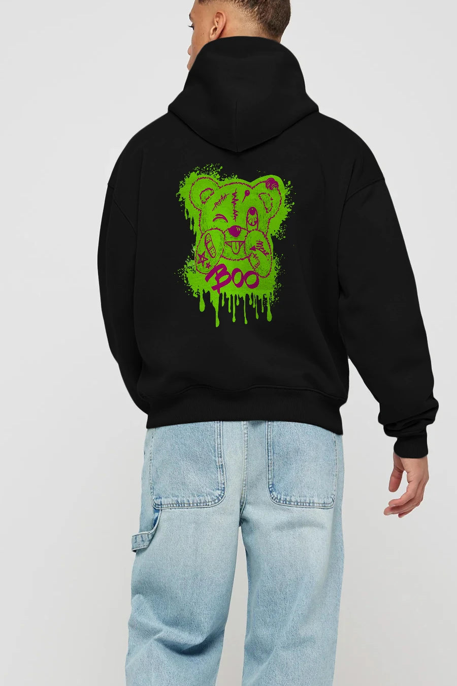 Boo Bear Arka Baskılı Hoodie Oversize Kapüşonlu Sweatshirt Erkek Kadın Unisex