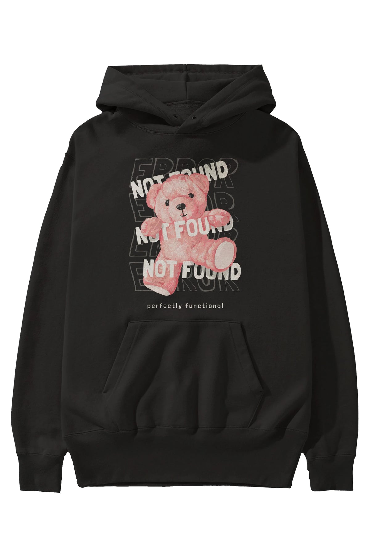 Error Not Found Bear Ön Baskılı Hoodie Oversize Kapüşonlu Sweatshirt Erkek Kadın Unisex