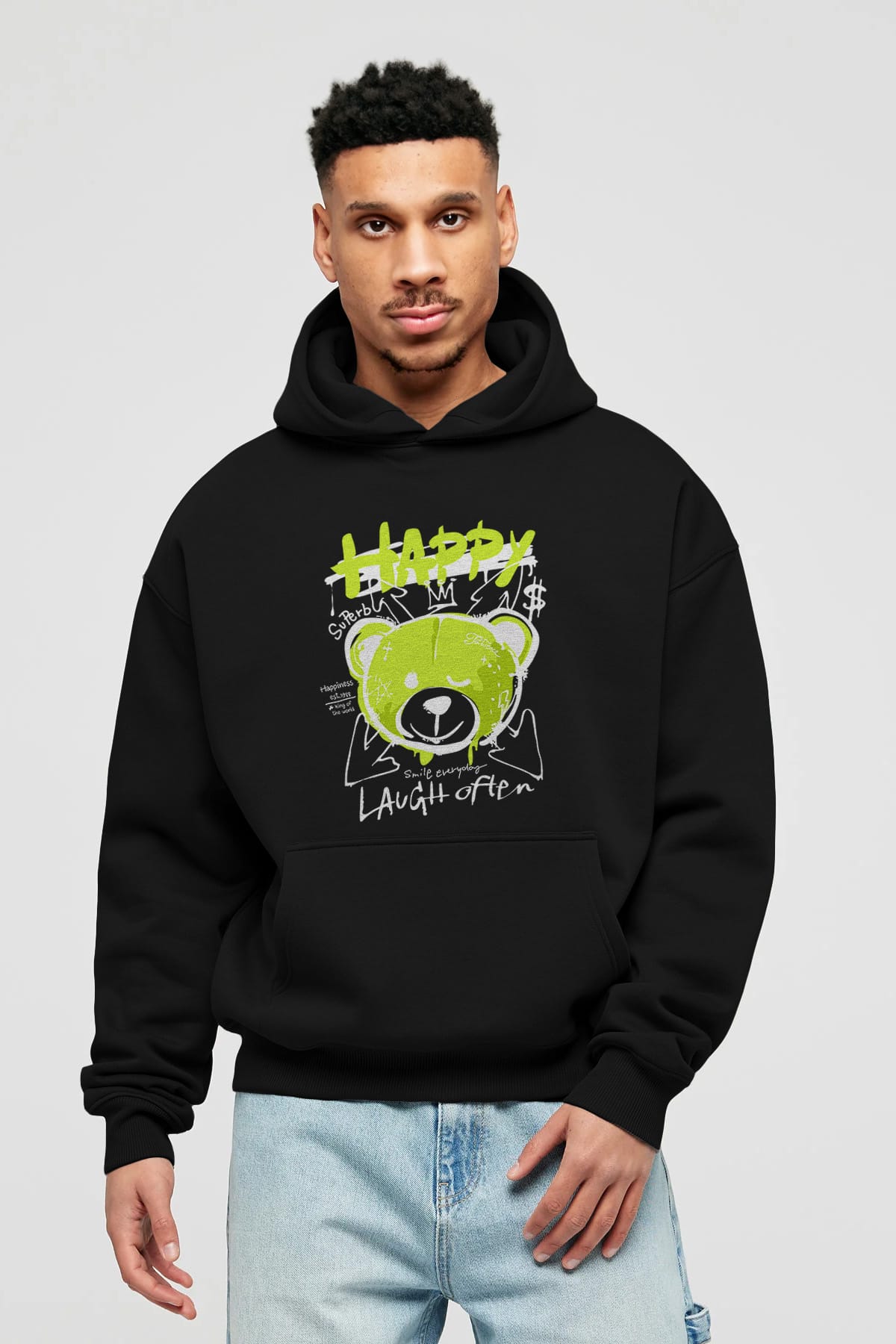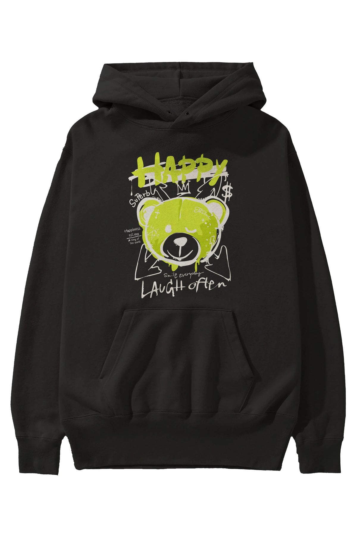 Happy Bear Ön Baskılı Hoodie Oversize Kapüşonlu Sweatshirt Erkek Kadın Unisex