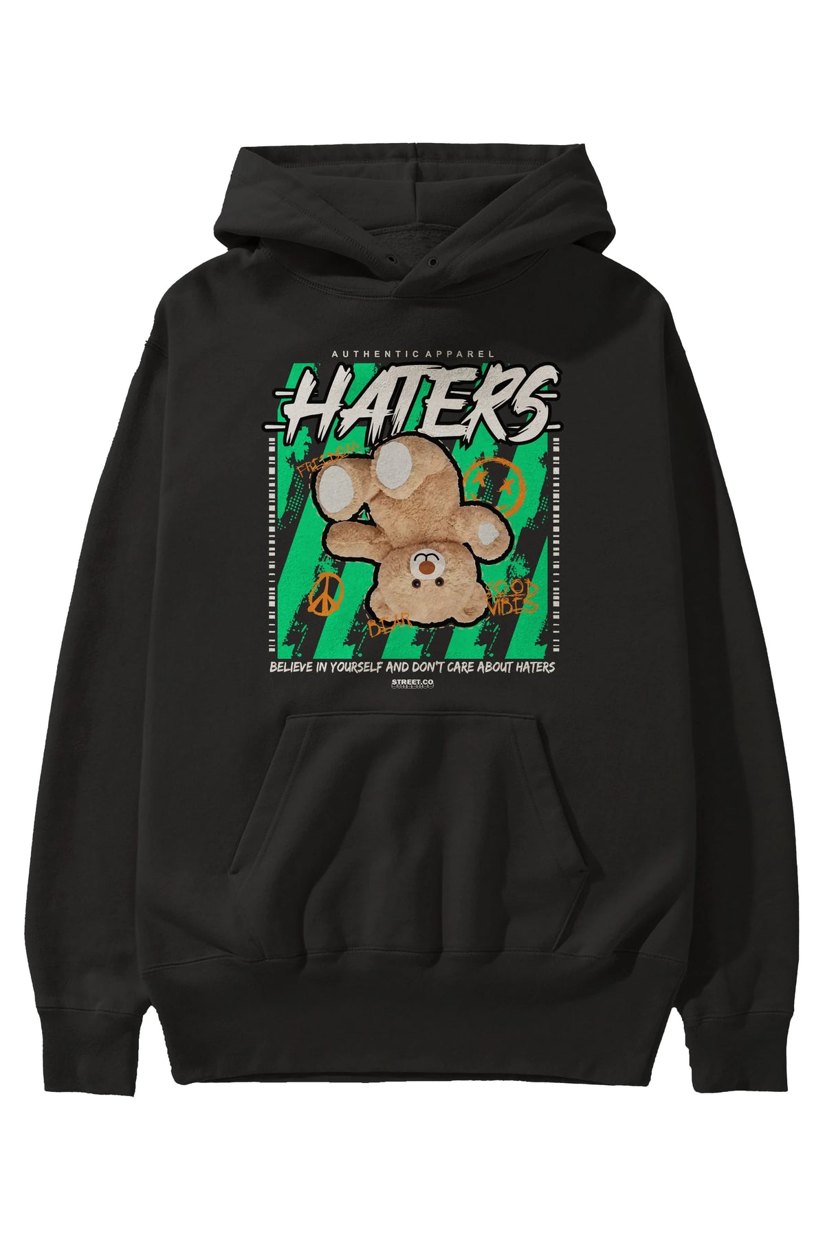 Haters Bear Ön Baskılı Hoodie Oversize Kapüşonlu Sweatshirt Erkek Kadın Unisex