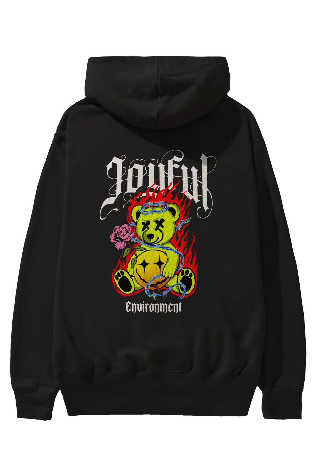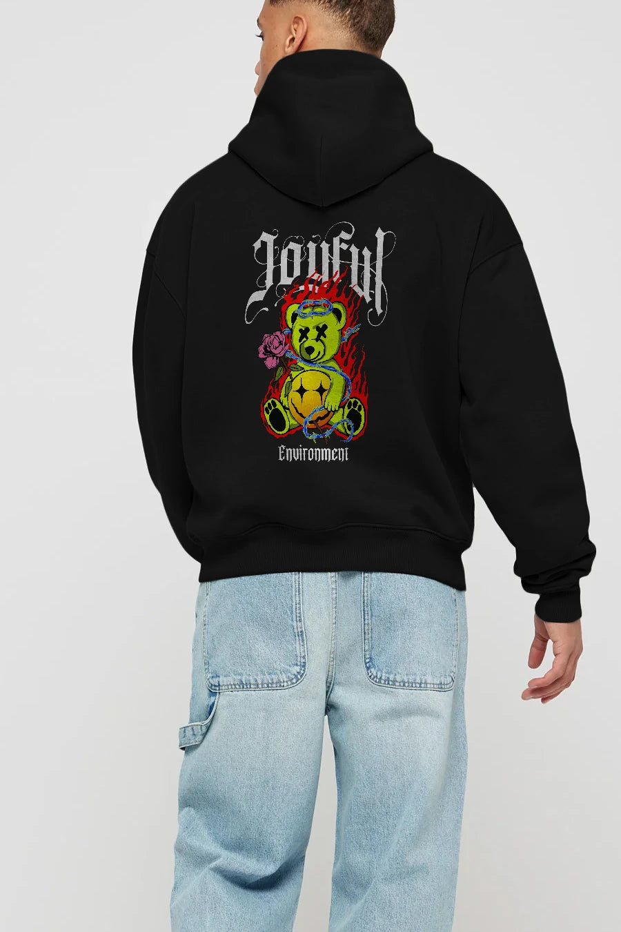 Joyful Bear Arka Baskılı Hoodie Oversize Kapüşonlu Sweatshirt Erkek Kadın Unisex