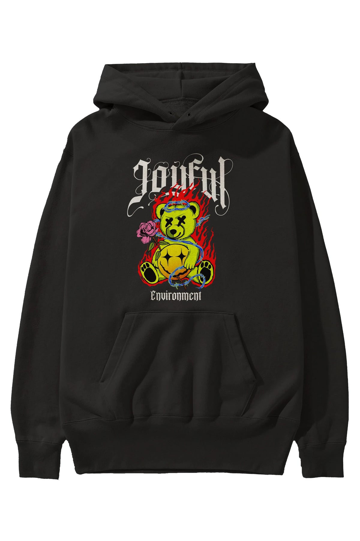 Joyful Bear Ön Baskılı Hoodie Oversize Kapüşonlu Sweatshirt Erkek Kadın Unisex