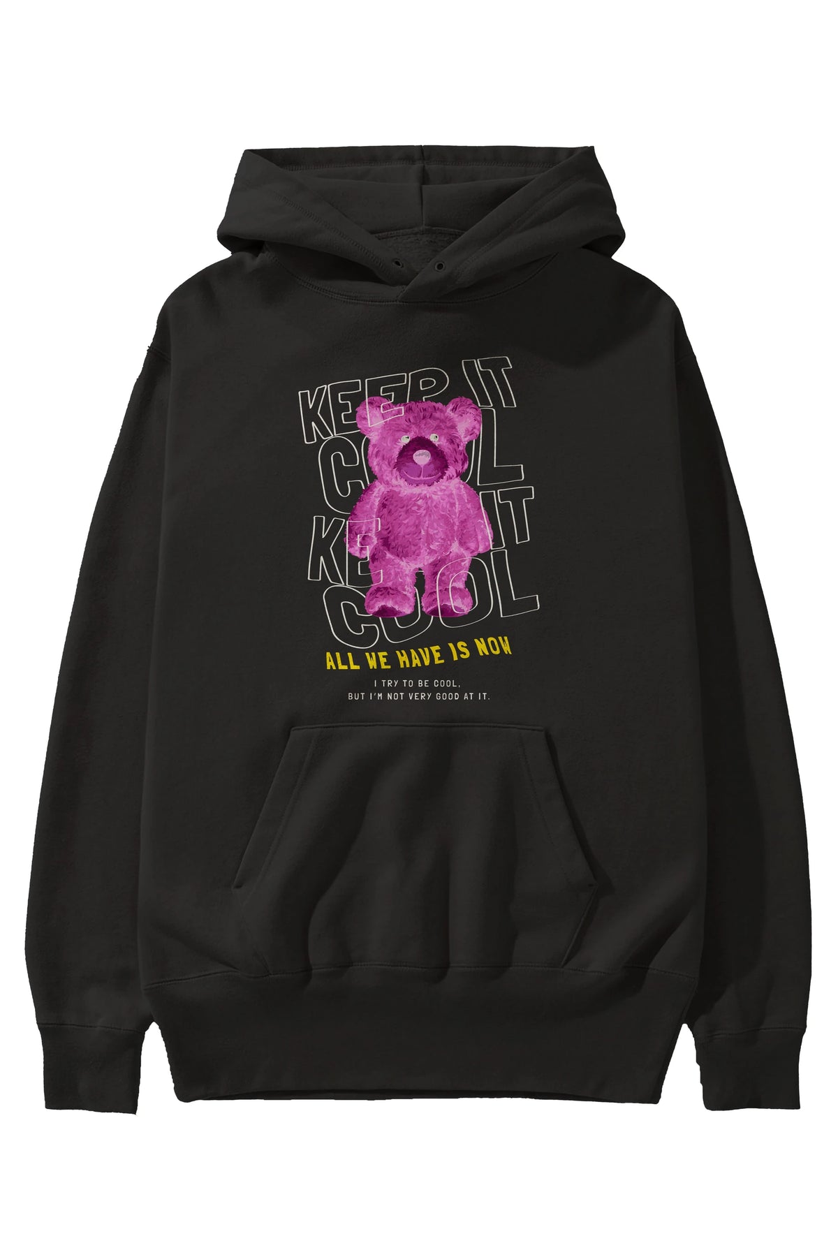 Keep it Cool Bear Ön Baskılı Hoodie Oversize Kapüşonlu Sweatshirt Erkek Kadın Unisex