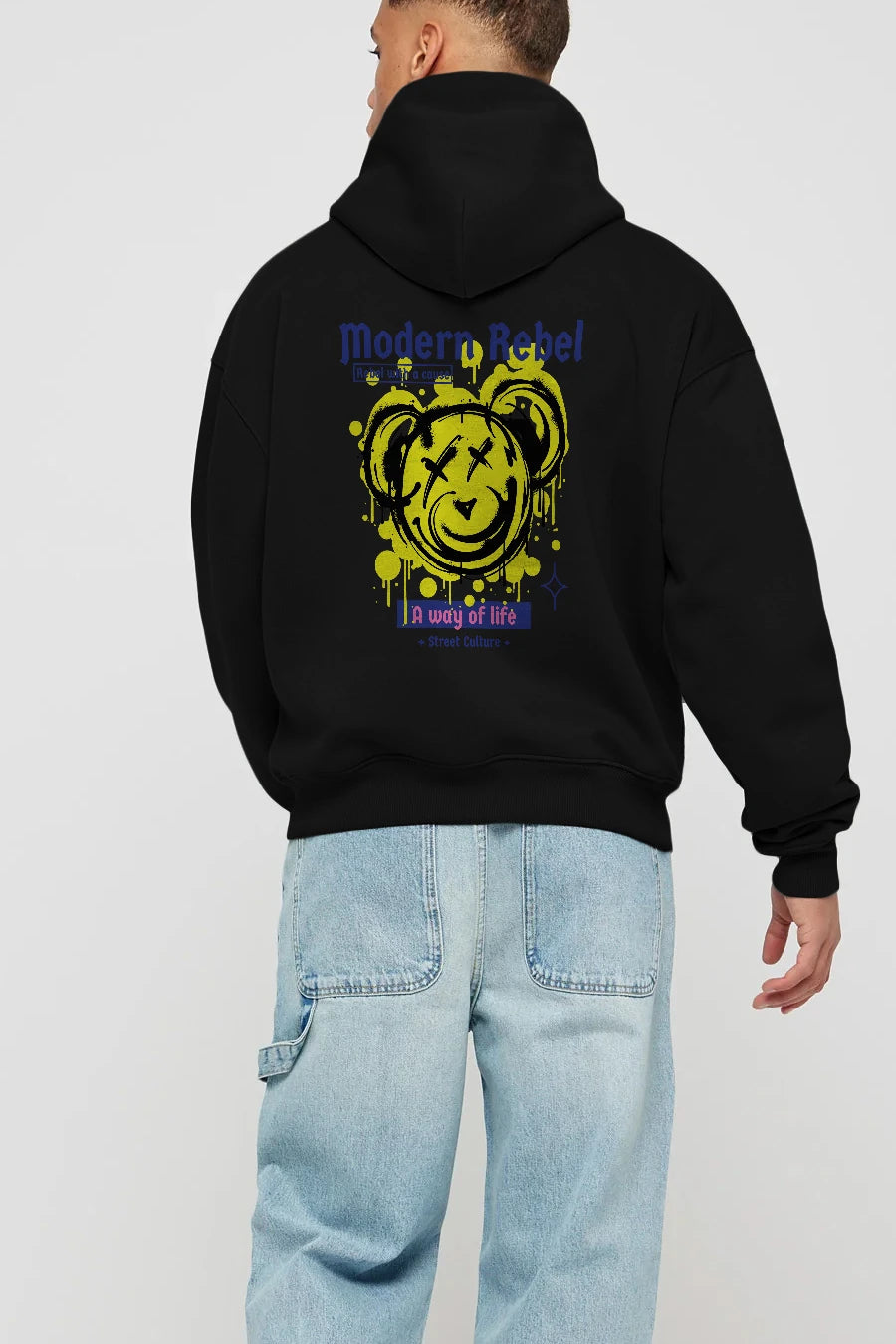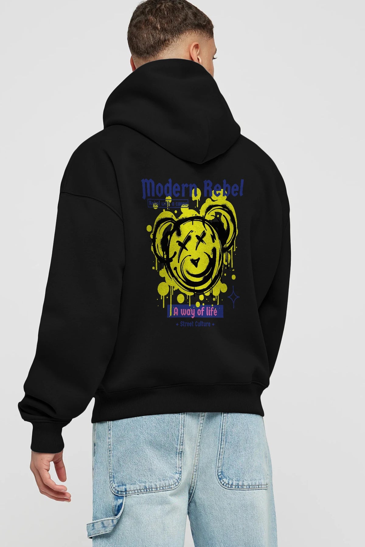 Modern Rebel Bear Arka Baskılı Hoodie Oversize Kapüşonlu Sweatshirt Erkek Kadın Unisex
