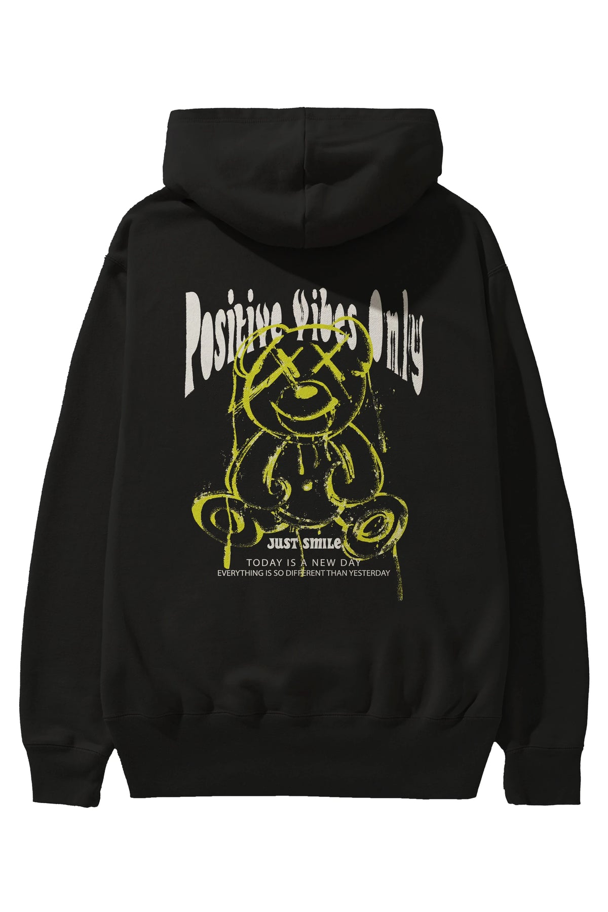 Positive Vibes Only Bear Arka Baskılı Hoodie Oversize Kapüşonlu Sweatshirt Erkek Kadın Unisex