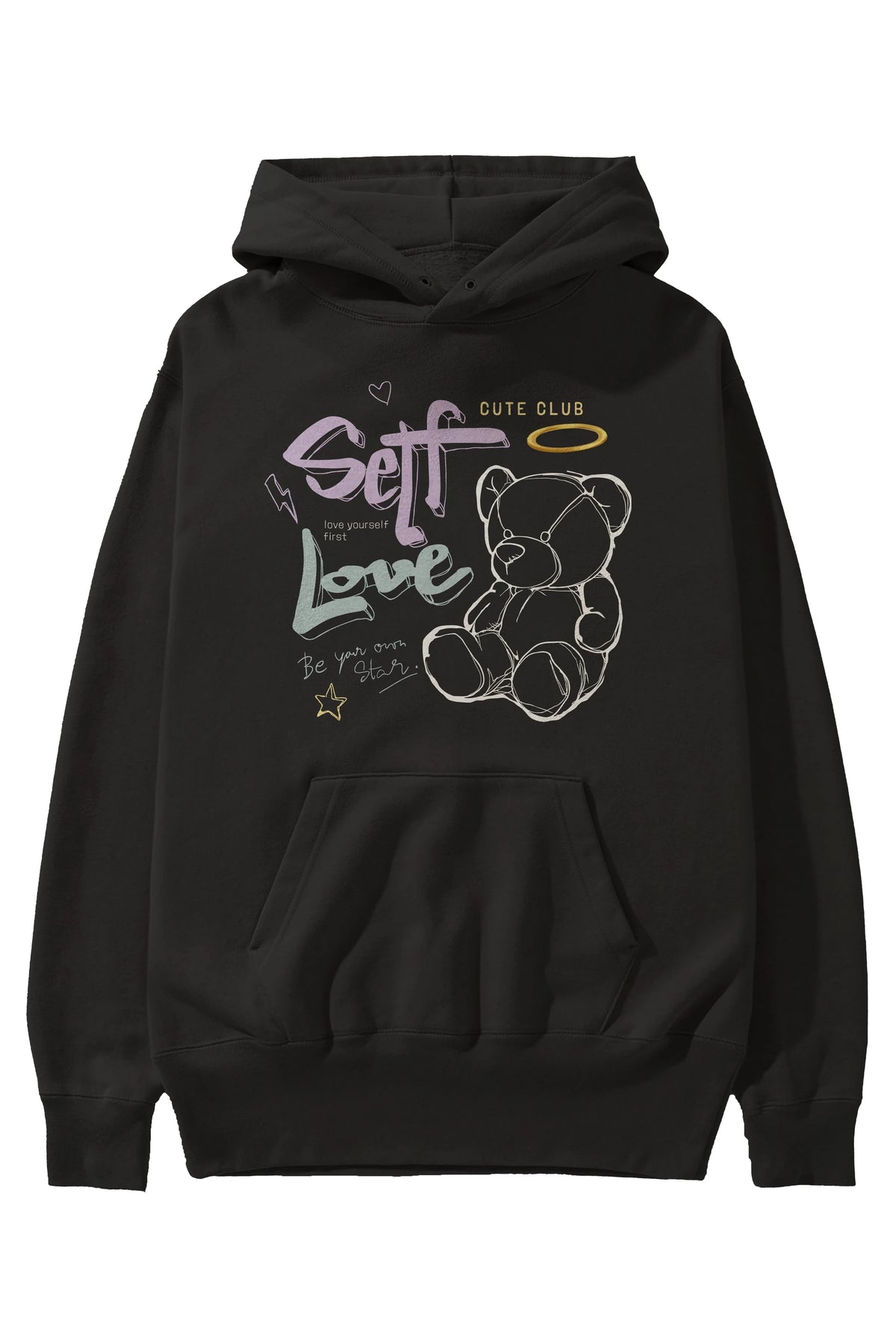 Self Love Bear Ön Baskılı Hoodie Oversize Kapüşonlu Sweatshirt Erkek Kadın Unisex