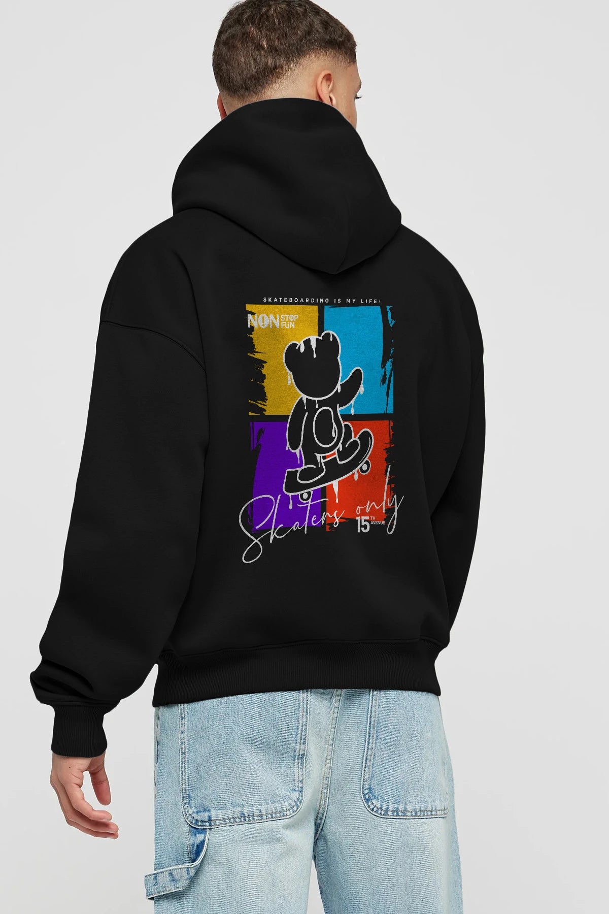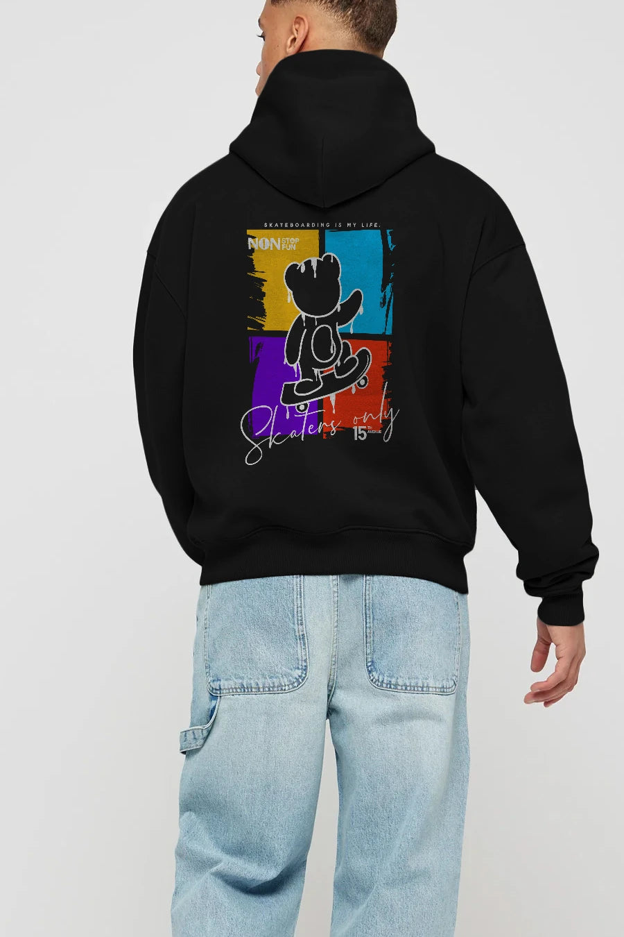 Skaters Only Bear Arka Baskılı Hoodie Oversize Kapüşonlu Sweatshirt Erkek Kadın Unisex