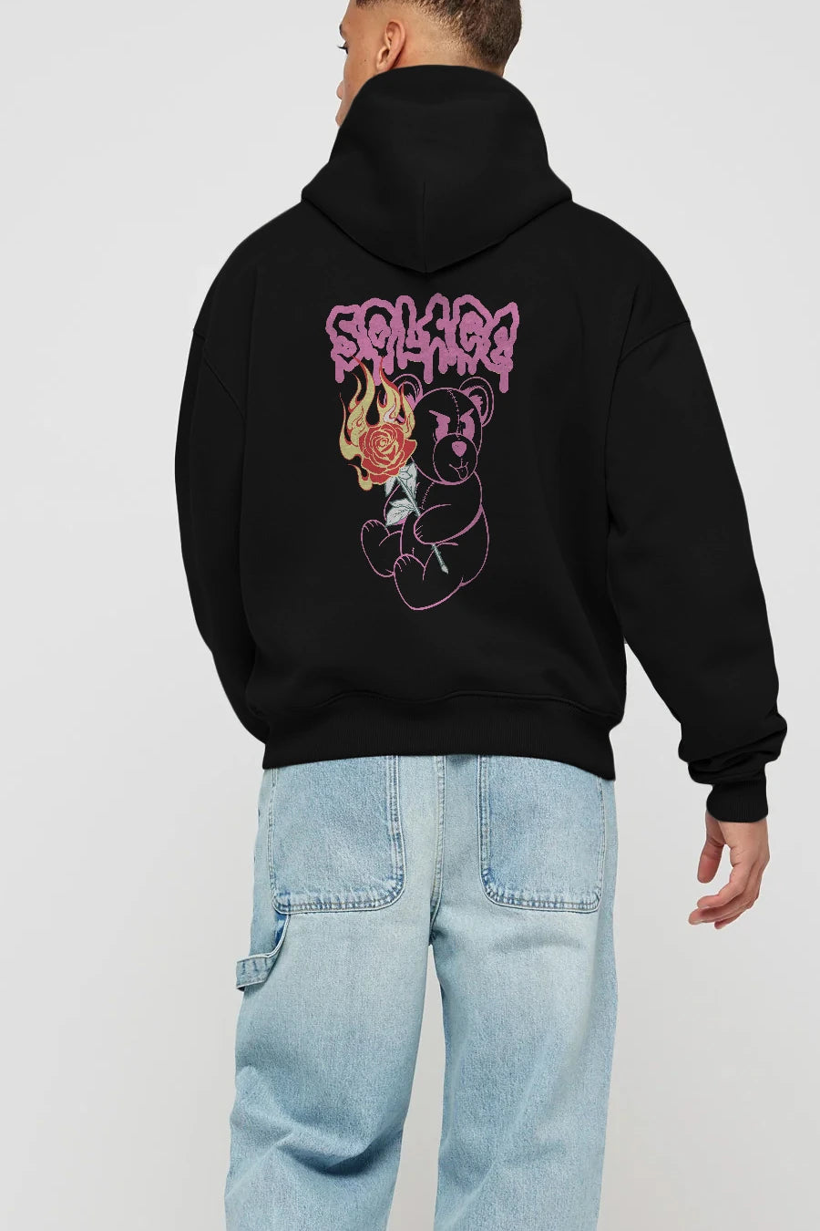 Solage Bear Arka Baskılı Hoodie Oversize Kapüşonlu Sweatshirt Erkek Kadın Unisex