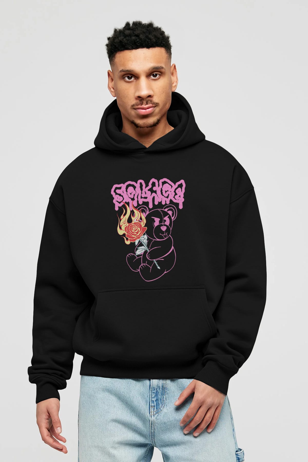 Solage Bear Ön Baskılı Hoodie Oversize Kapüşonlu Sweatshirt Erkek Kadın Unisex