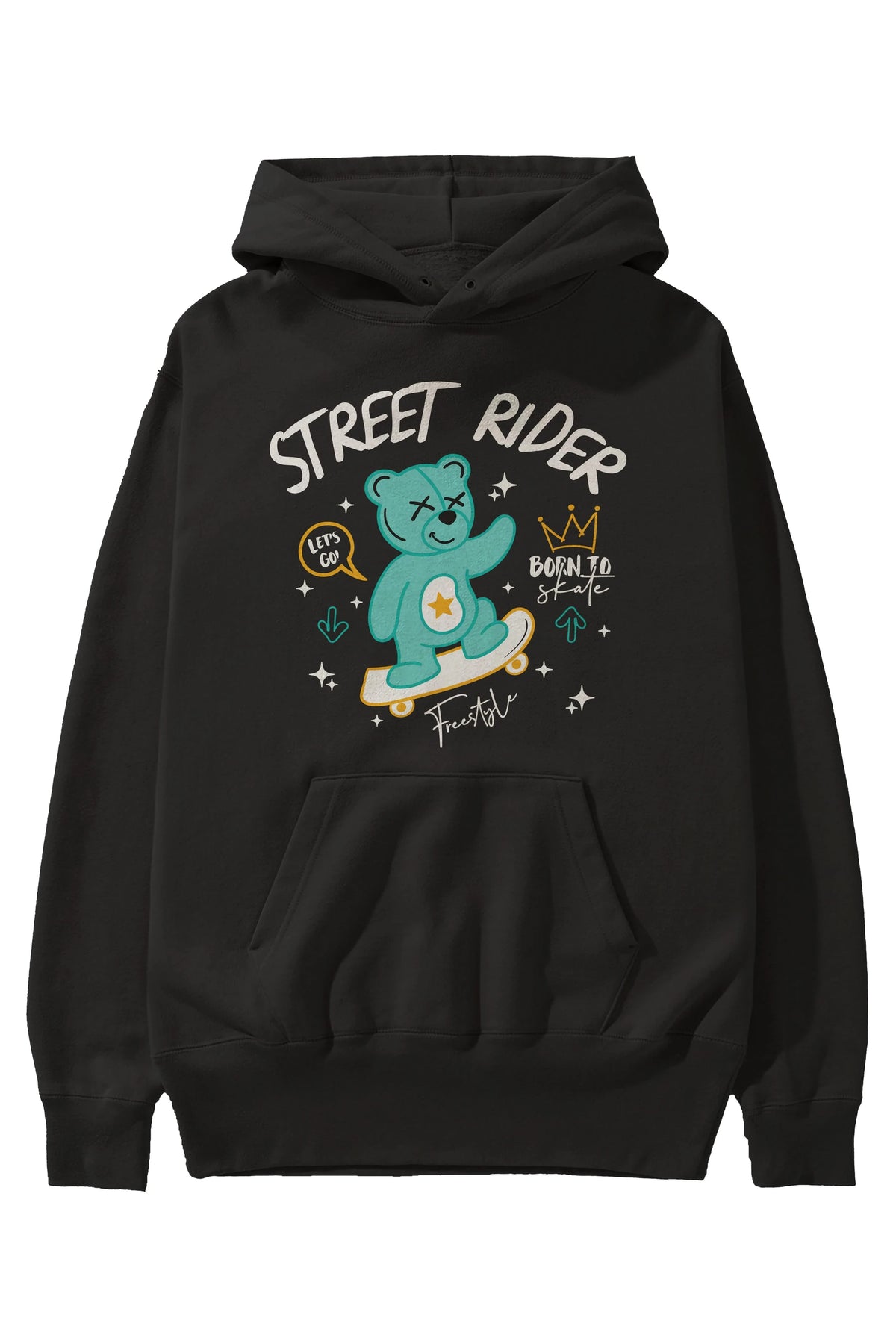 Street Rider Bear Ön Baskılı Hoodie Oversize Kapüşonlu Sweatshirt Erkek Kadın Unisex