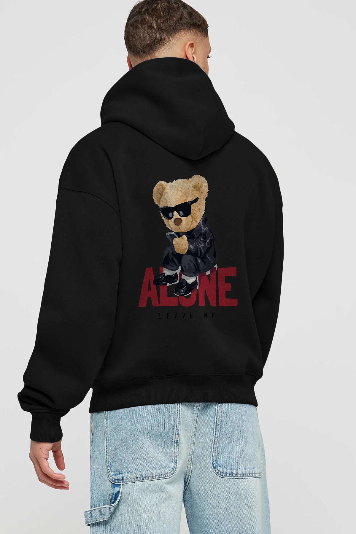 Teddy Bear Alone Arka Baskılı Hoodie Oversize Kapüşonlu Sweatshirt Erkek Kadın Unisex