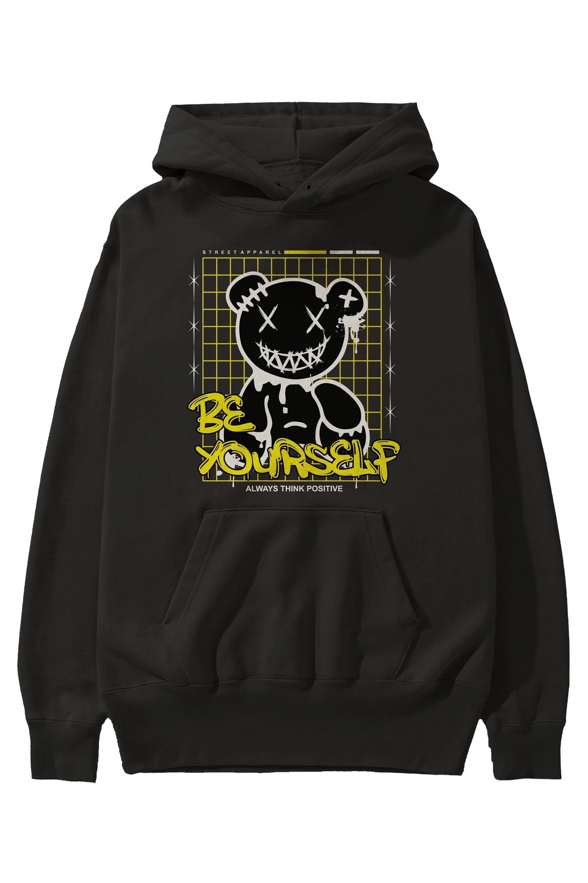 Teddy Bear Be Yourself Ön Baskılı Hoodie Oversize Kapüşonlu Sweatshirt Erkek Kadın Unisex