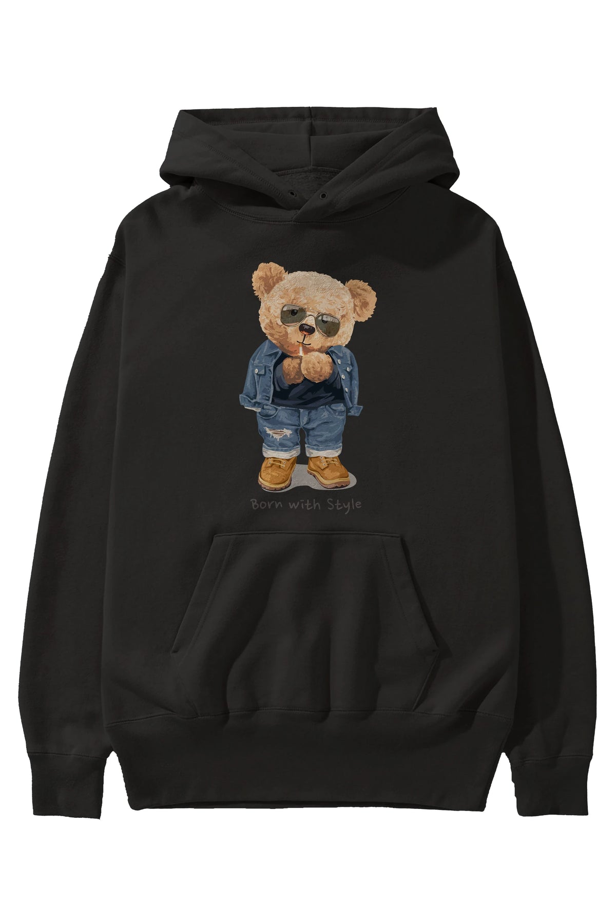 Teddy Bear Born With Style Ön Baskılı Hoodie Oversize Kapüşonlu Sweatshirt Erkek Kadın Unisex