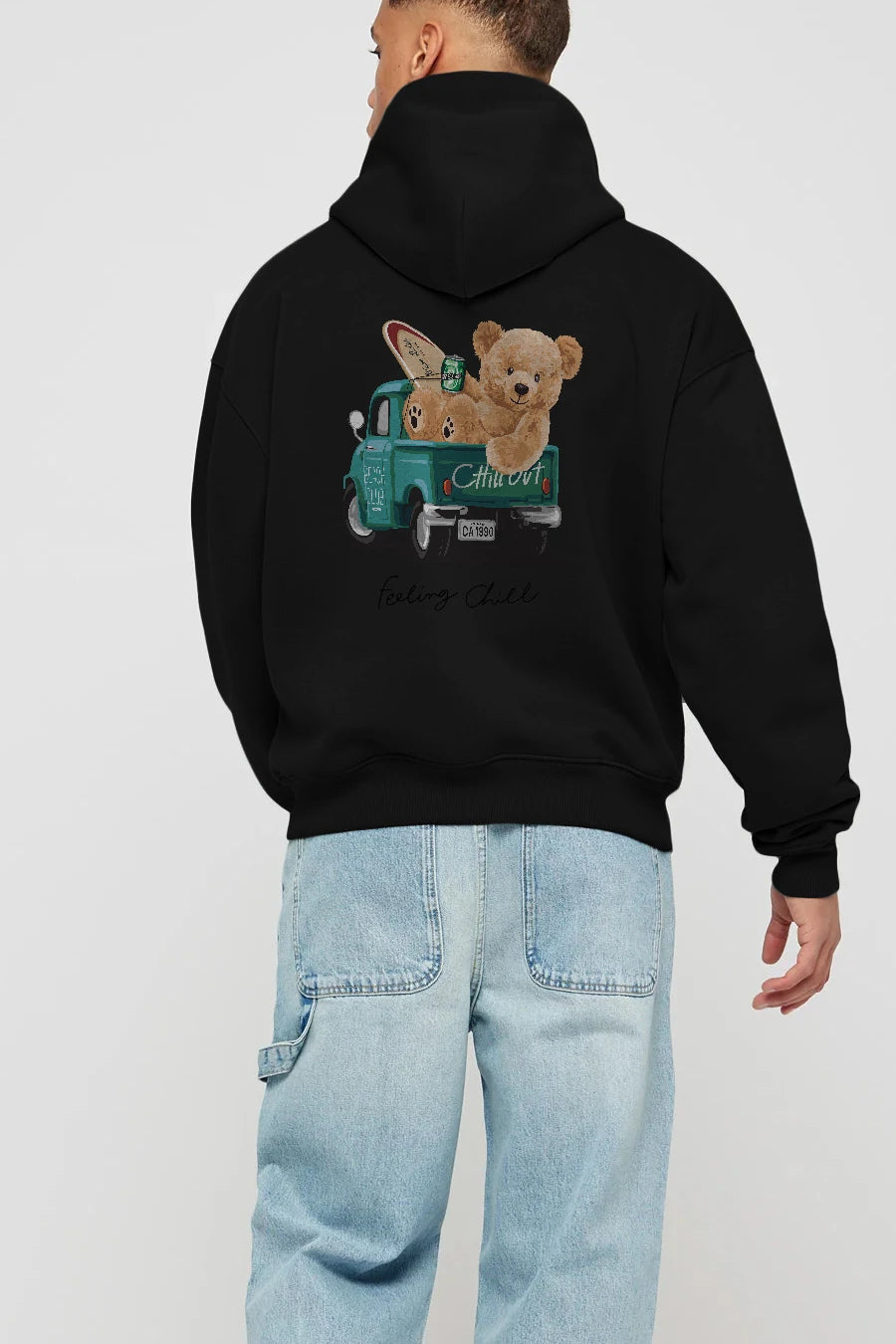 Teddy Bear Chill Out Arka Baskılı Hoodie Oversize Kapüşonlu Sweatshirt Erkek Kadın Unisex