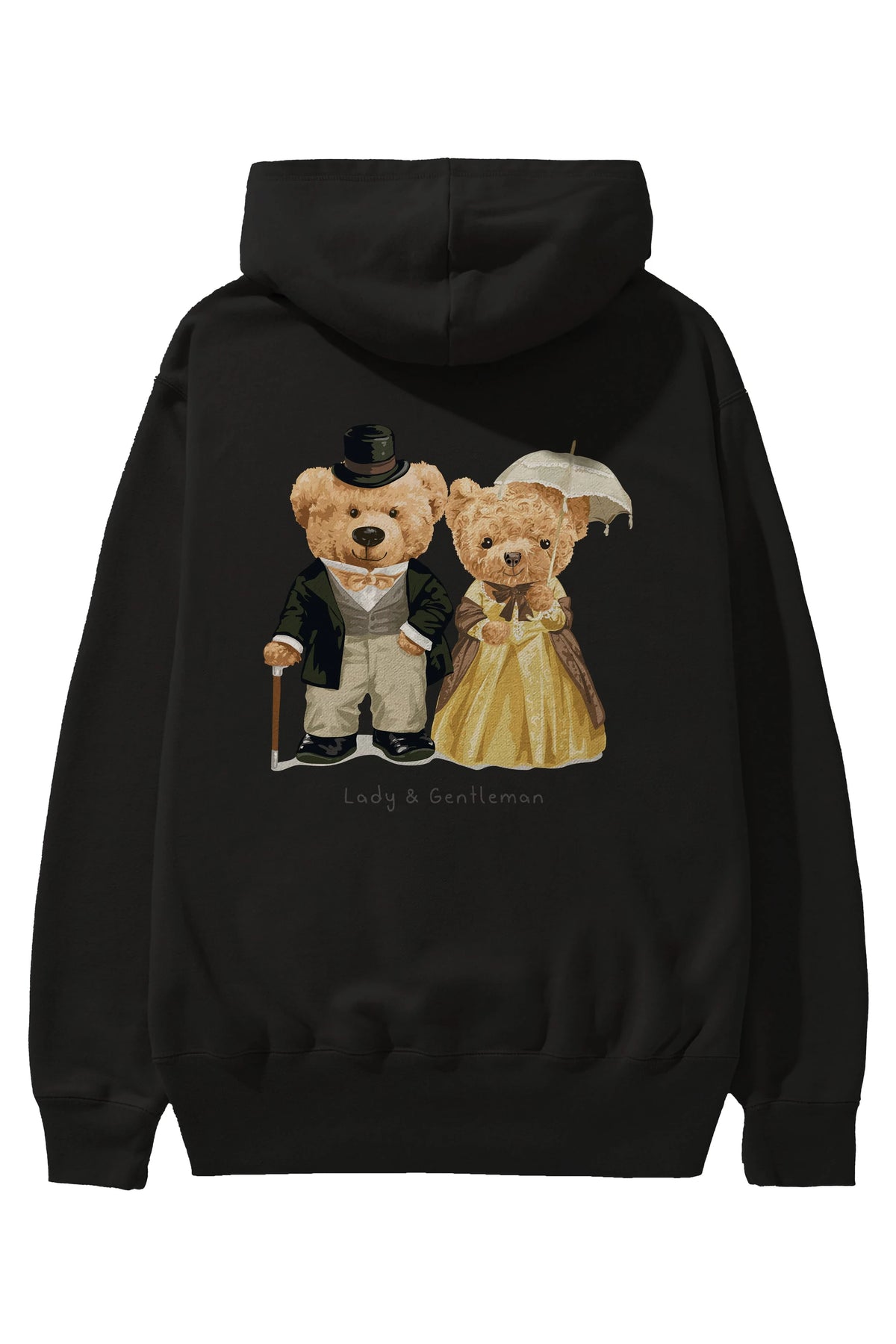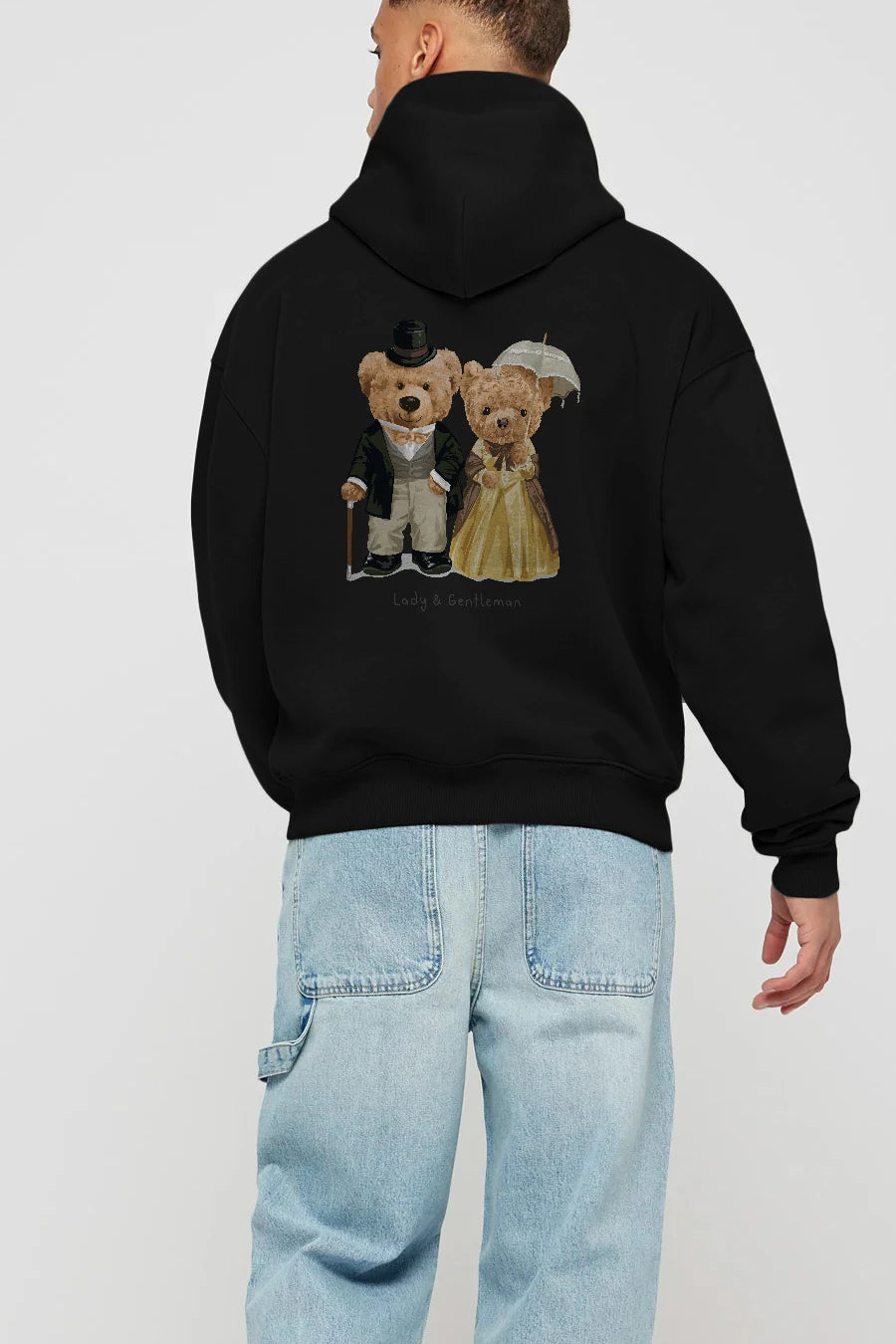 Teddy Bear Couple Arka Baskılı Hoodie Oversize Kapüşonlu Sweatshirt Erkek Kadın Unisex