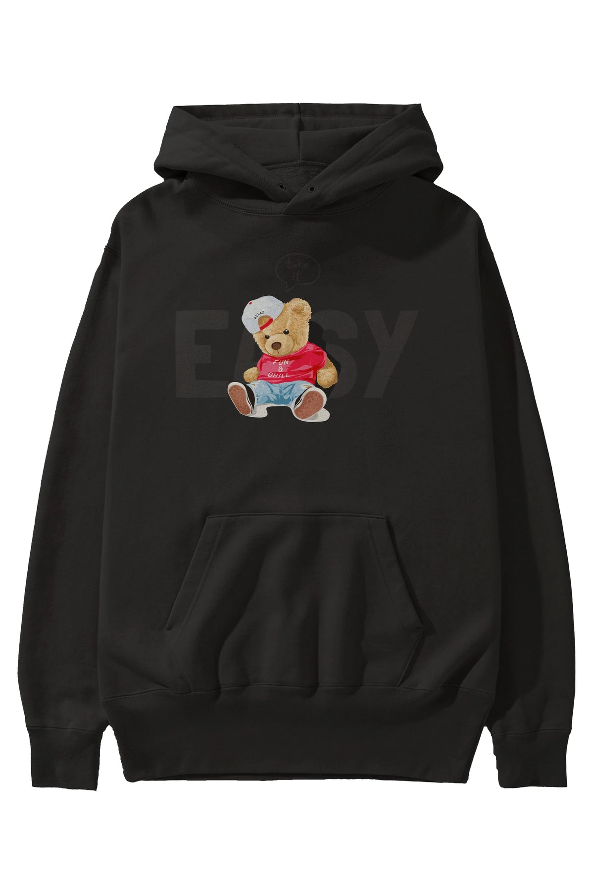 Teddy Bear Easy Ön Baskılı Hoodie Oversize Kapüşonlu Sweatshirt Erkek Kadın Unisex