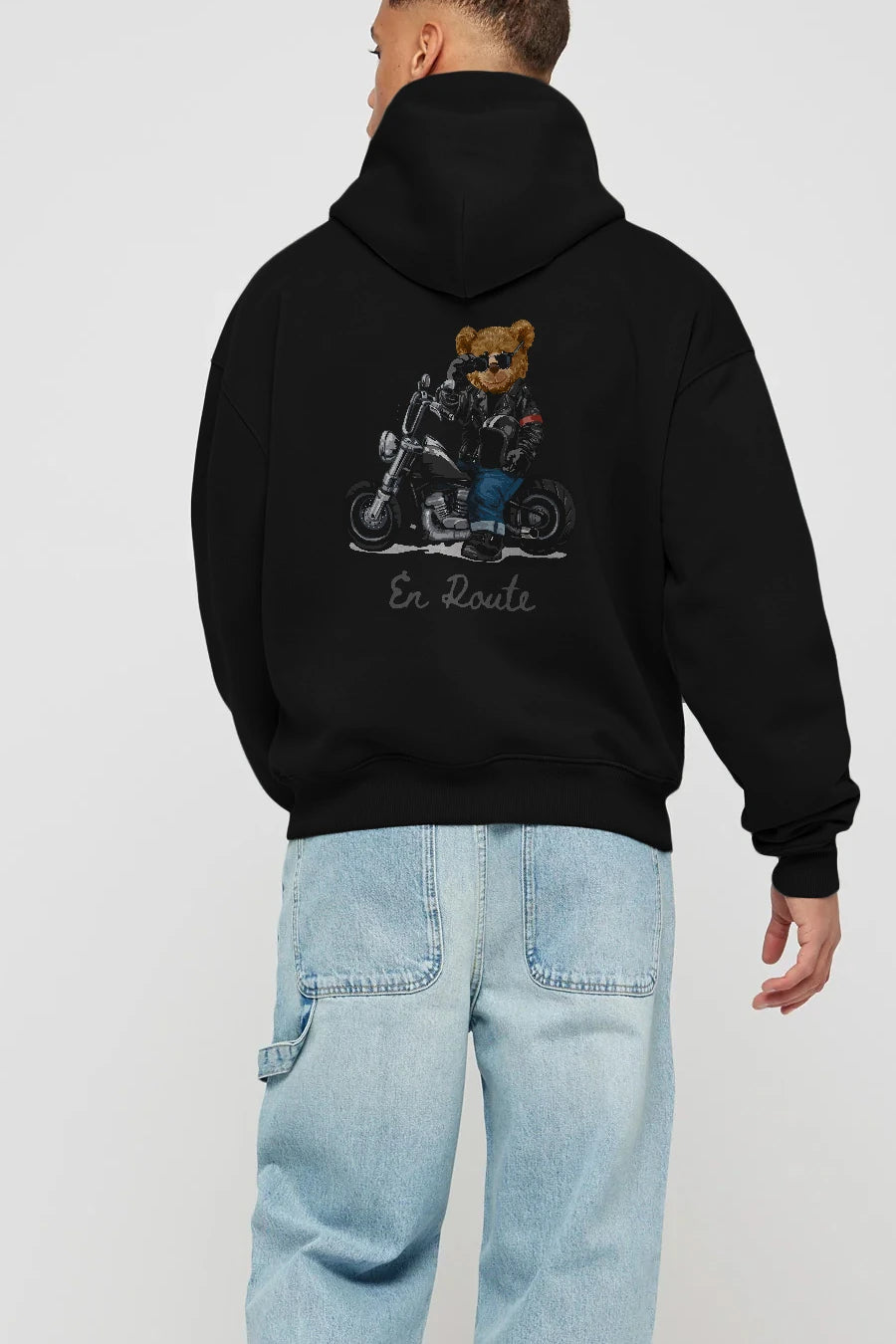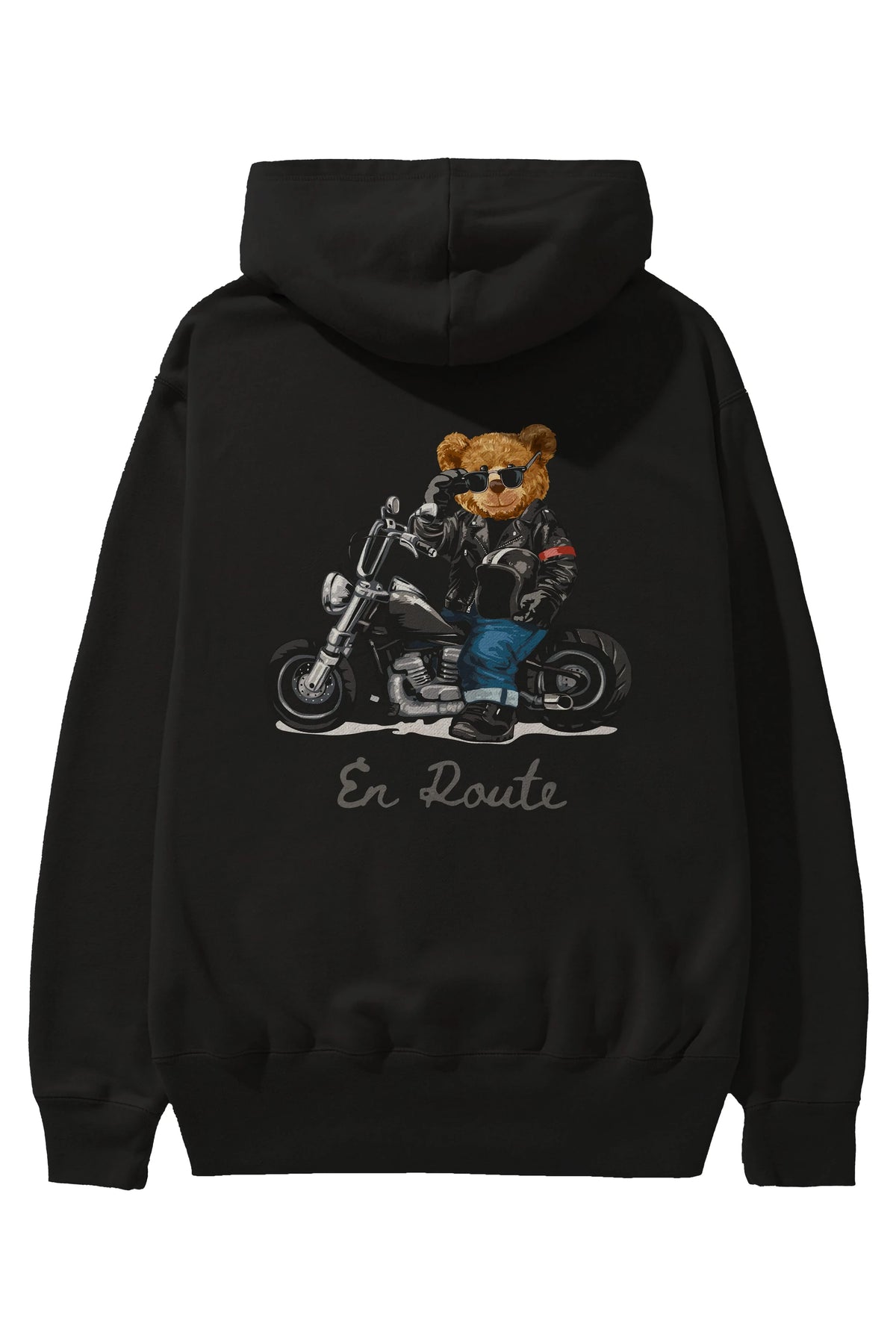 Teddy Bear En Route Arka Baskılı Hoodie Oversize Kapüşonlu Sweatshirt Erkek Kadın Unisex