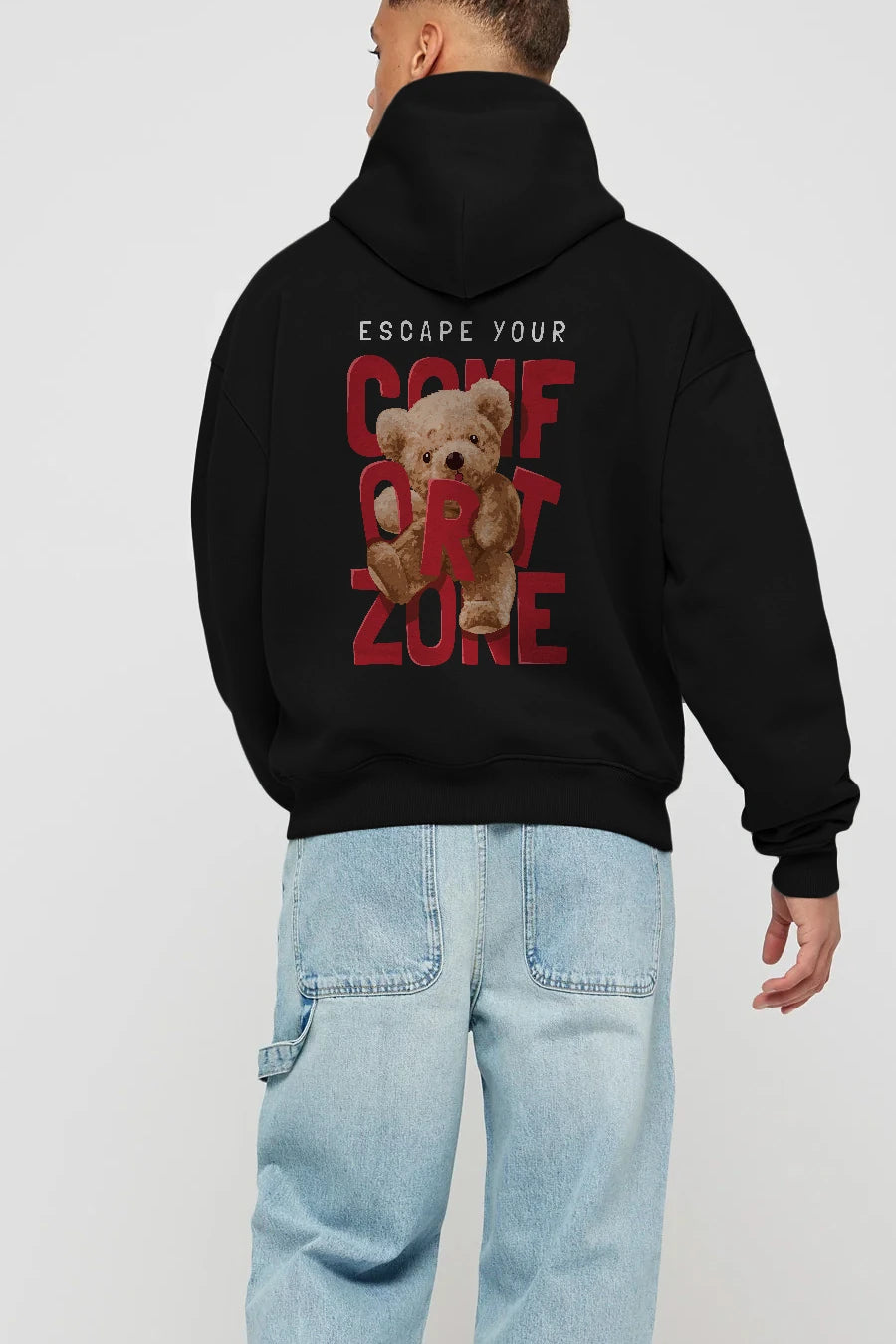 Teddy Bear Escape Comfort Zone Arka Baskılı Hoodie Oversize Kapüşonlu Sweatshirt Erkek Kadın Unisex