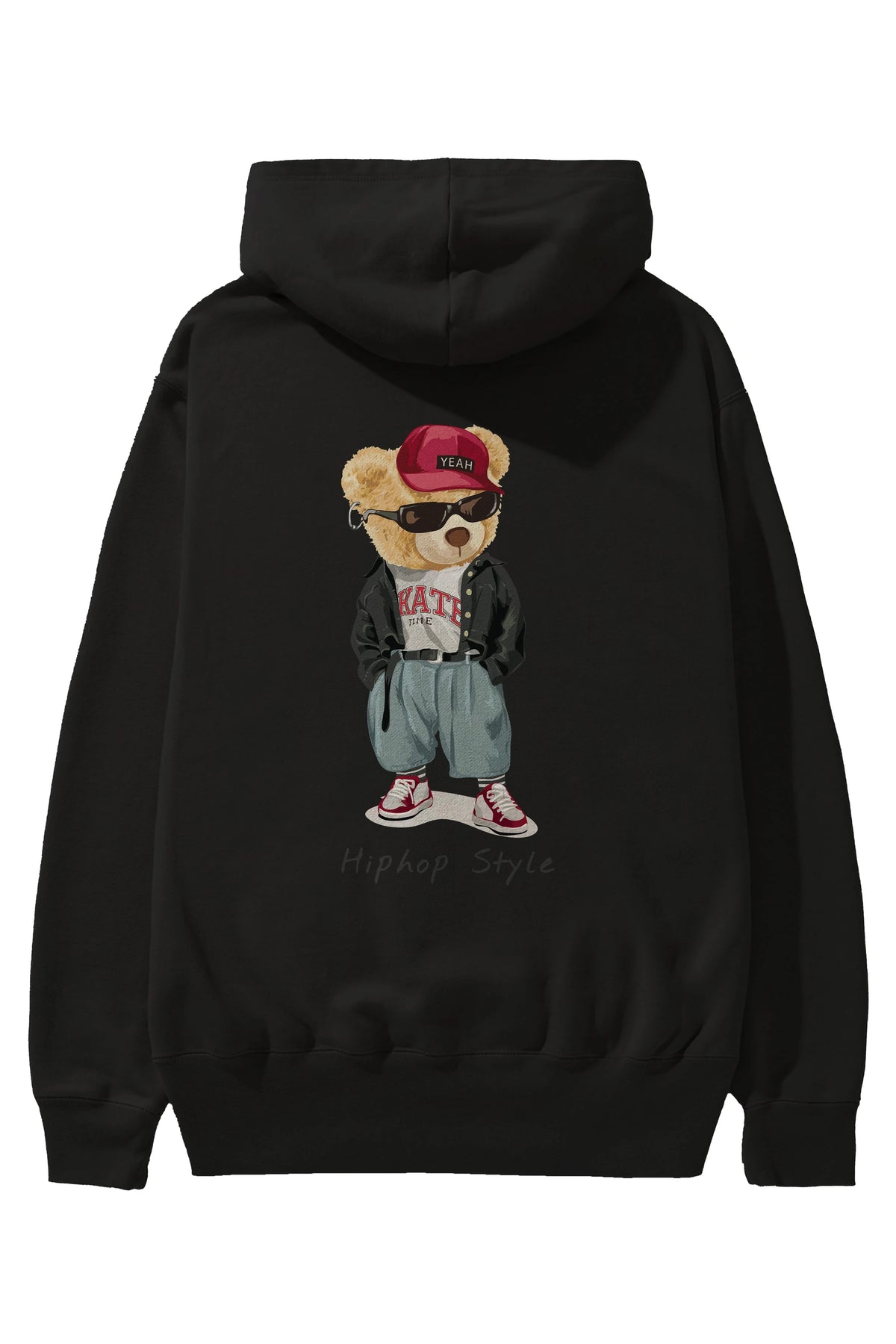 Teddy Bear Hiphop Style Arka Baskılı Hoodie Oversize Kapüşonlu Sweatshirt Erkek Kadın Unisex
