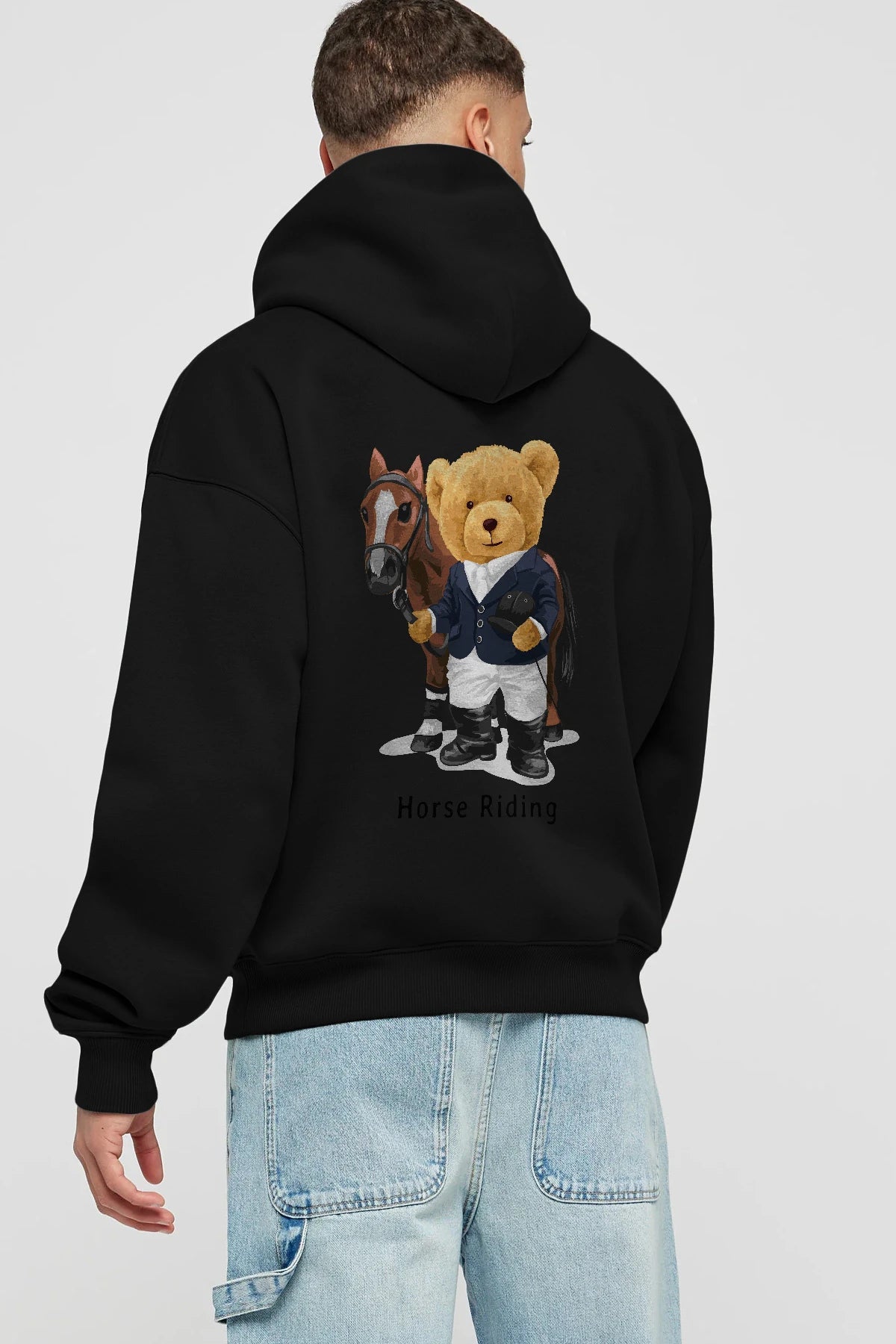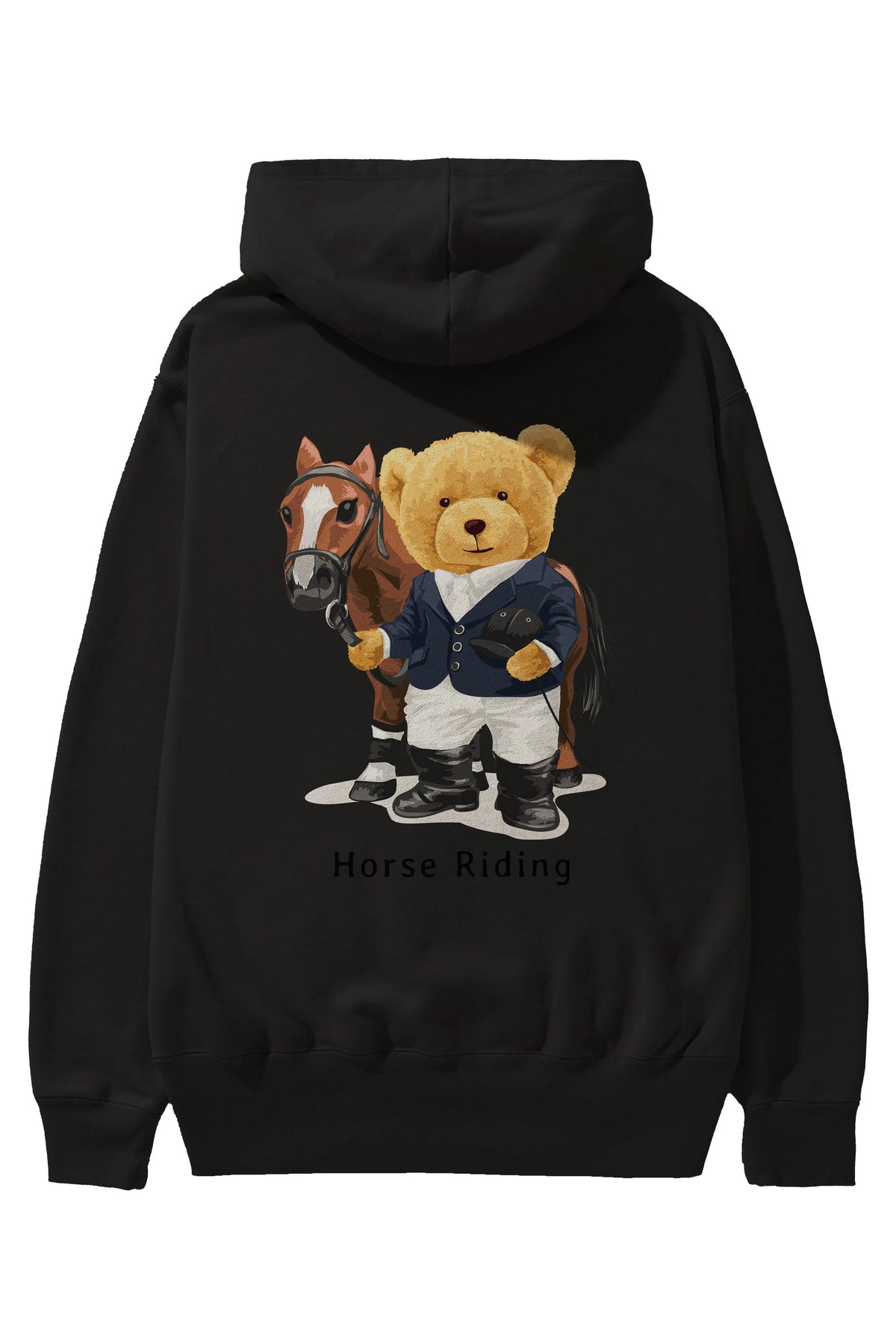 Teddy Bear Horse Riding Arka Baskılı Hoodie Oversize Kapüşonlu Sweatshirt Erkek Kadın Unisex