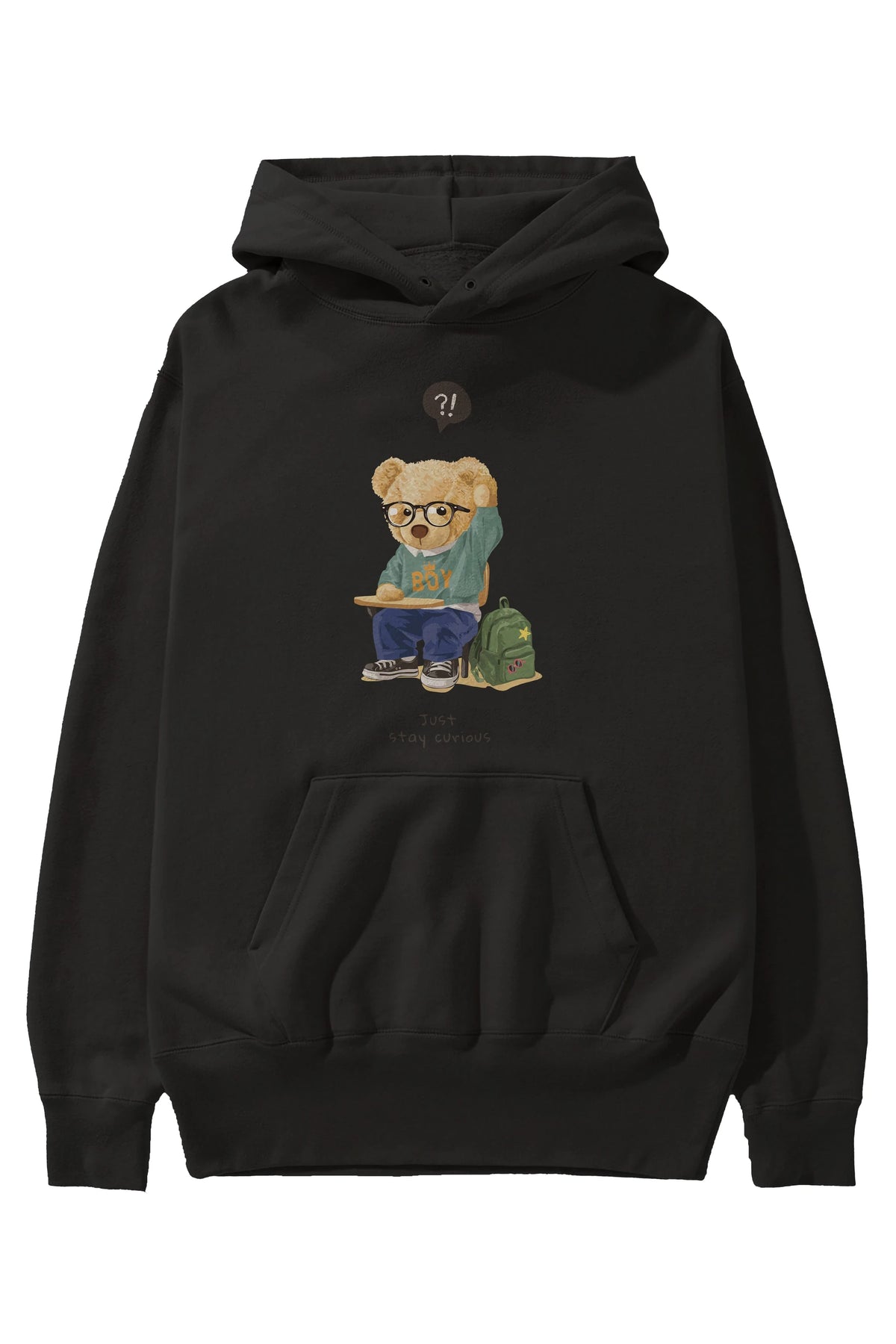 Teddy Bear Just Stay Curious Ön Baskılı Hoodie Oversize Kapüşonlu Sweatshirt Erkek Kadın Unisex