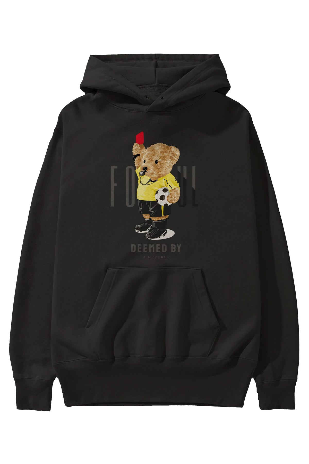 Teddy Bear Kırmızı Kart Ön Baskılı Hoodie Oversize Kapüşonlu Sweatshirt Erkek Kadın Unisex