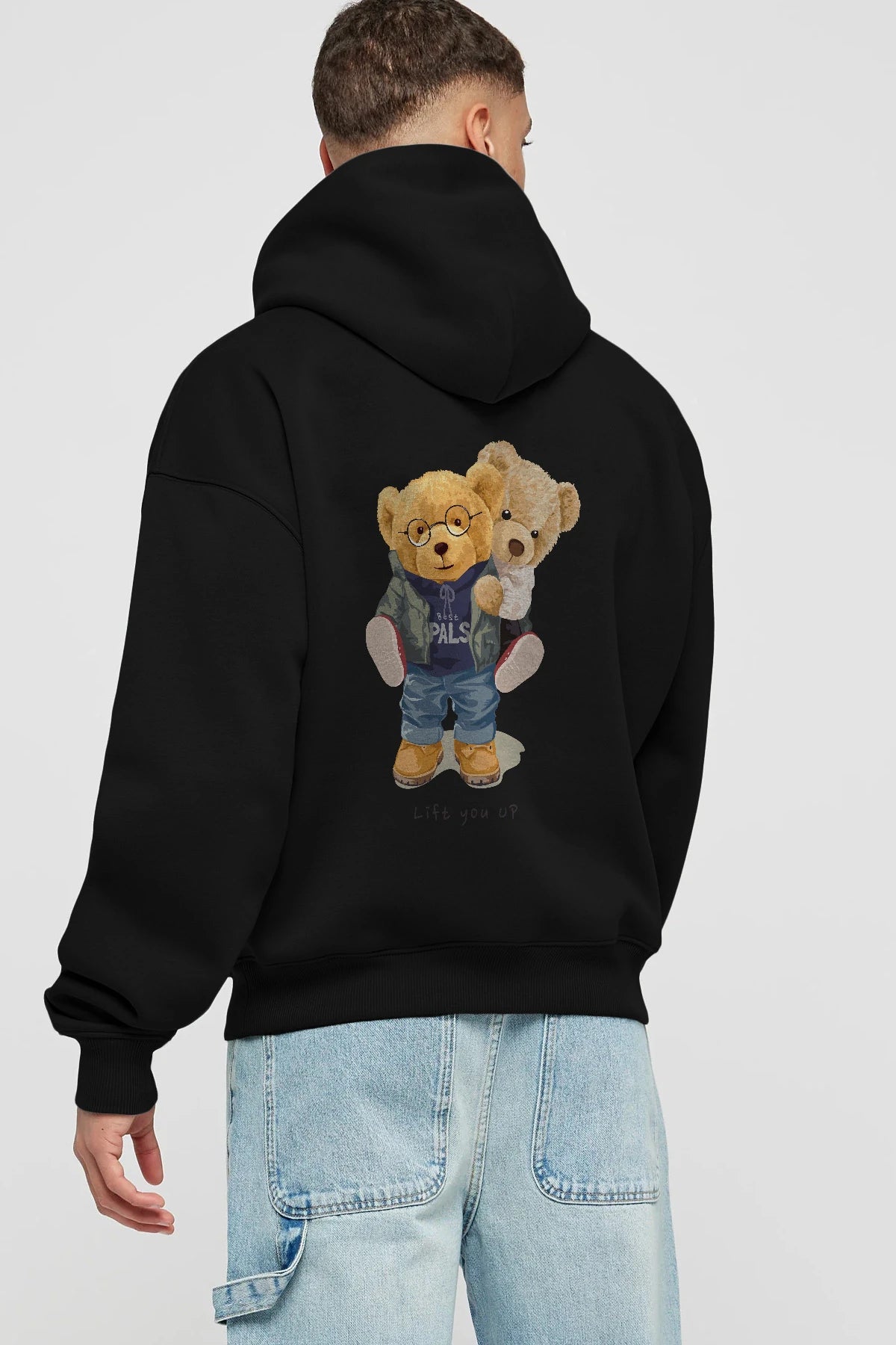 Teddy Bear Lift You Up Arka Baskılı Hoodie Oversize Kapüşonlu Sweatshirt Erkek Kadın Unisex