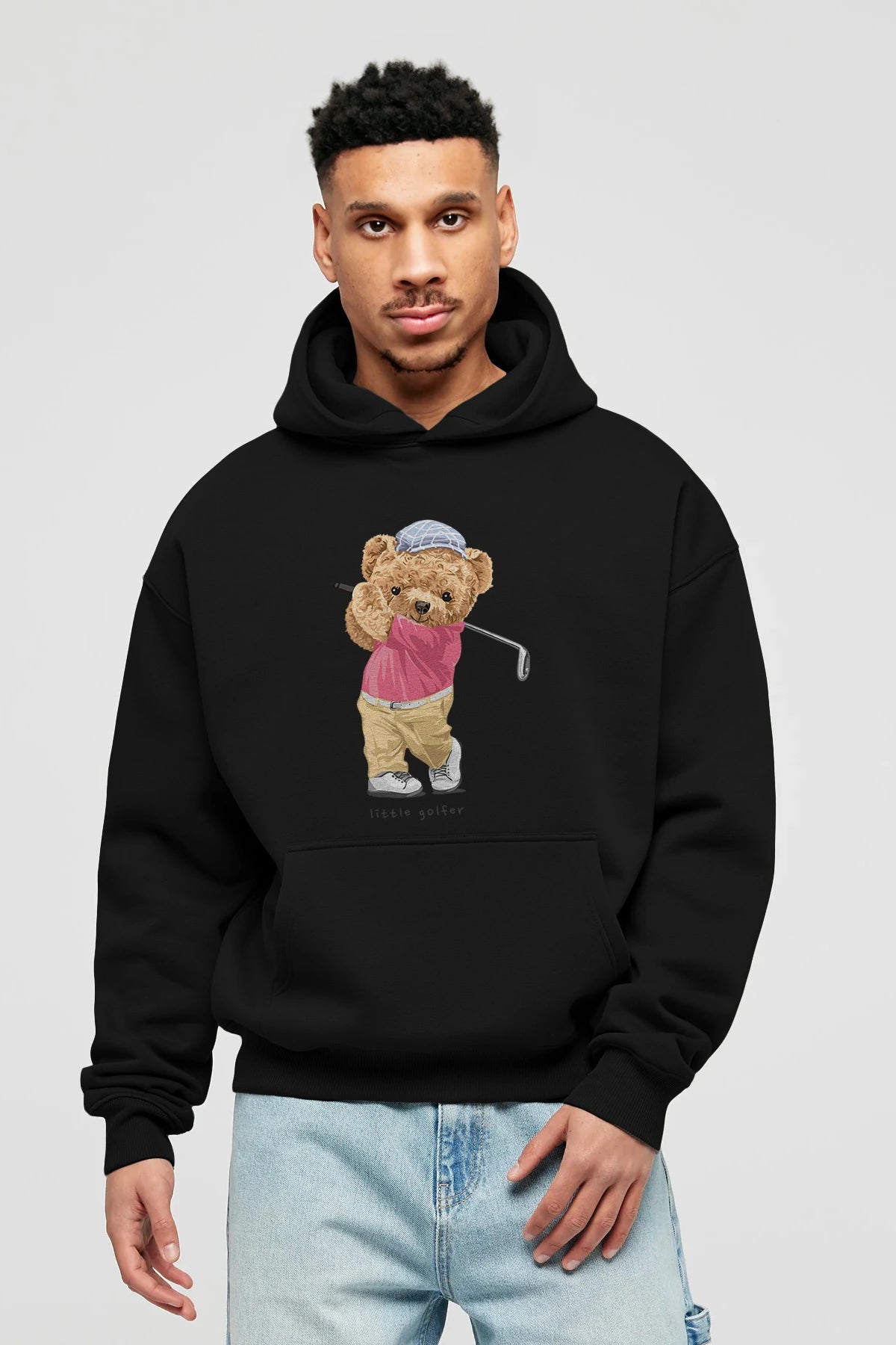 Teddy Bear Little Golfer Ön Baskılı Hoodie Oversize Kapüşonlu Sweatshirt Erkek Kadın Unisex