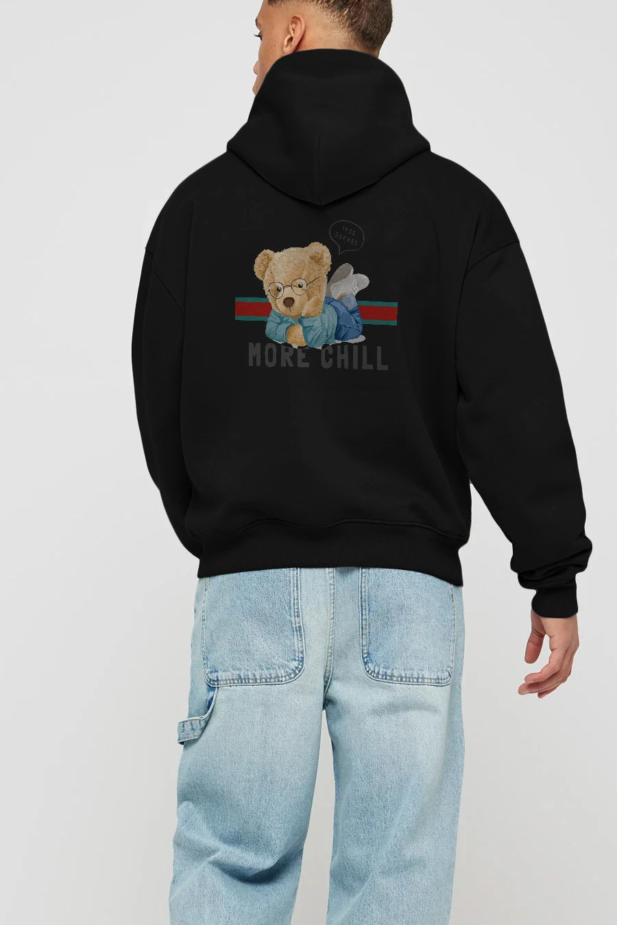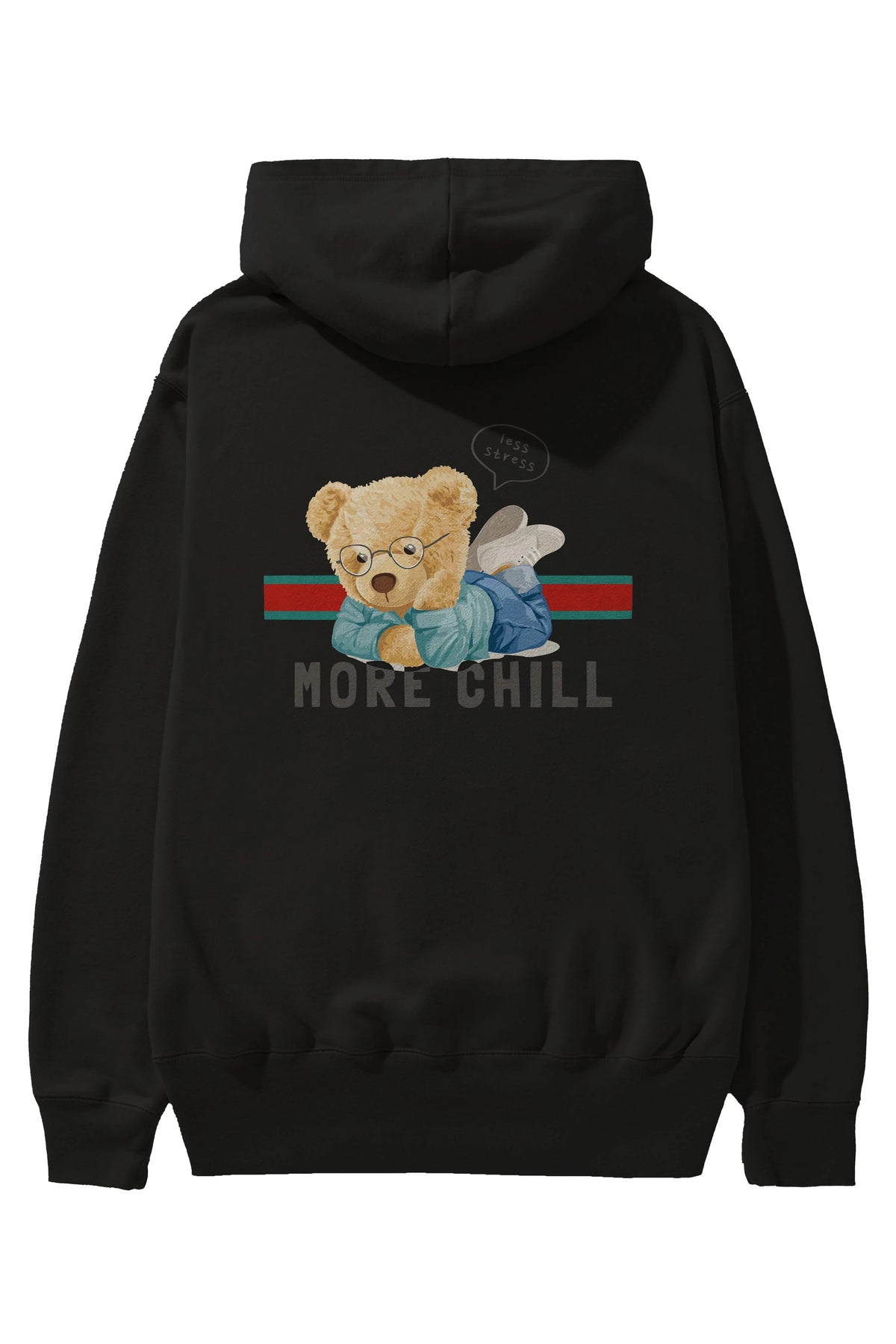 Teddy Bear More Chill Arka Baskılı Hoodie Oversize Kapüşonlu Sweatshirt Erkek Kadın Unisex