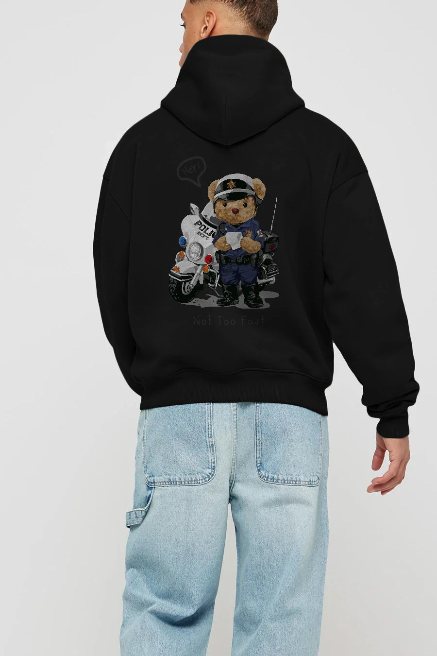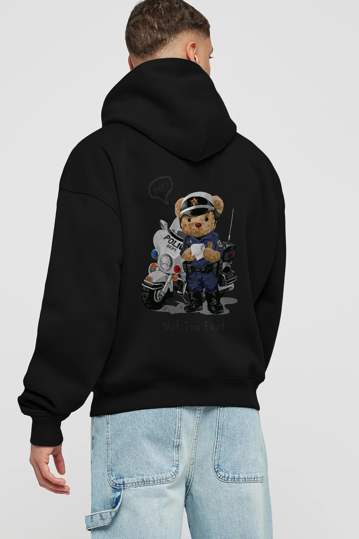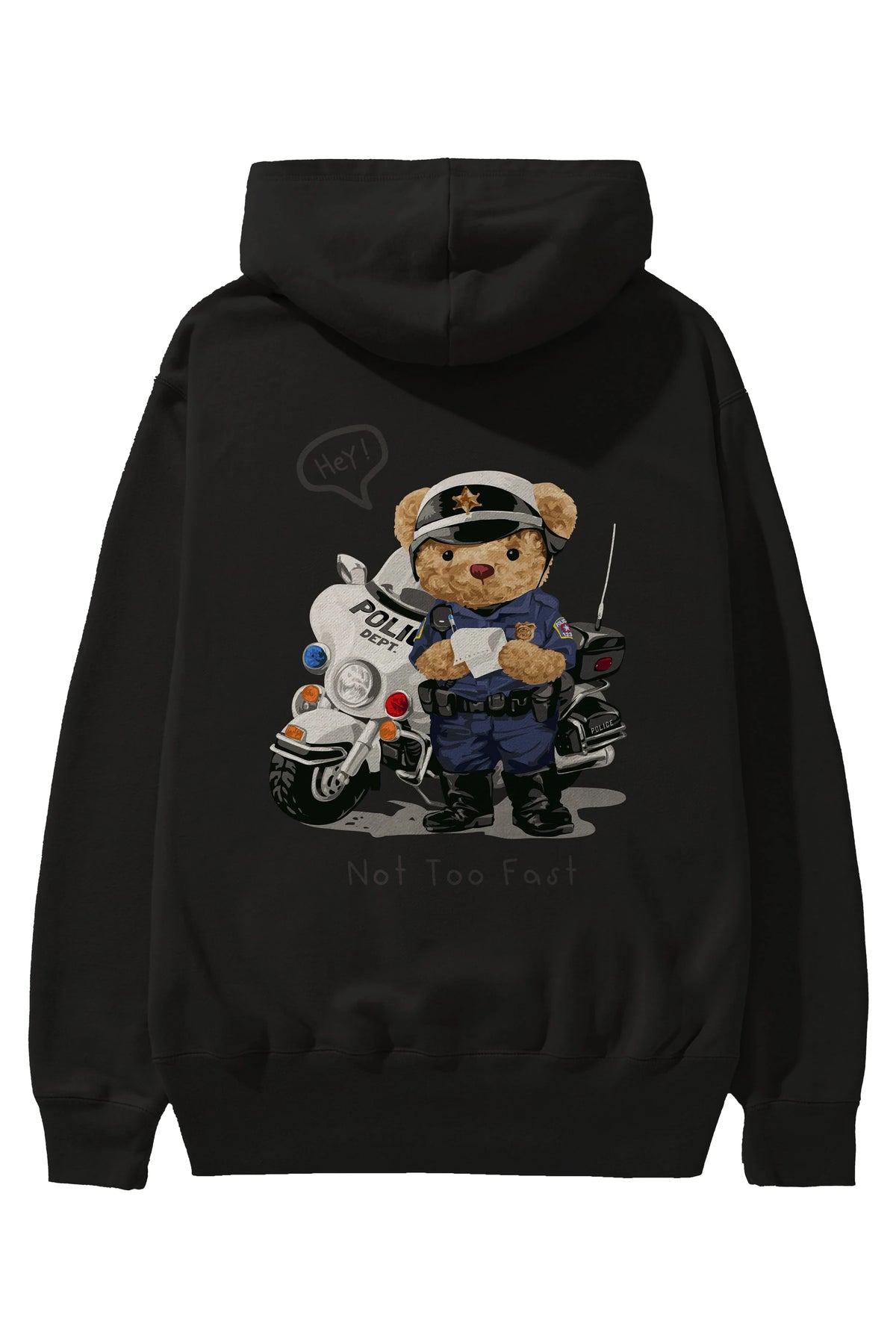Teddy Bear Not Too Fast Arka Baskılı Hoodie Oversize Kapüşonlu Sweatshirt Erkek Kadın Unisex