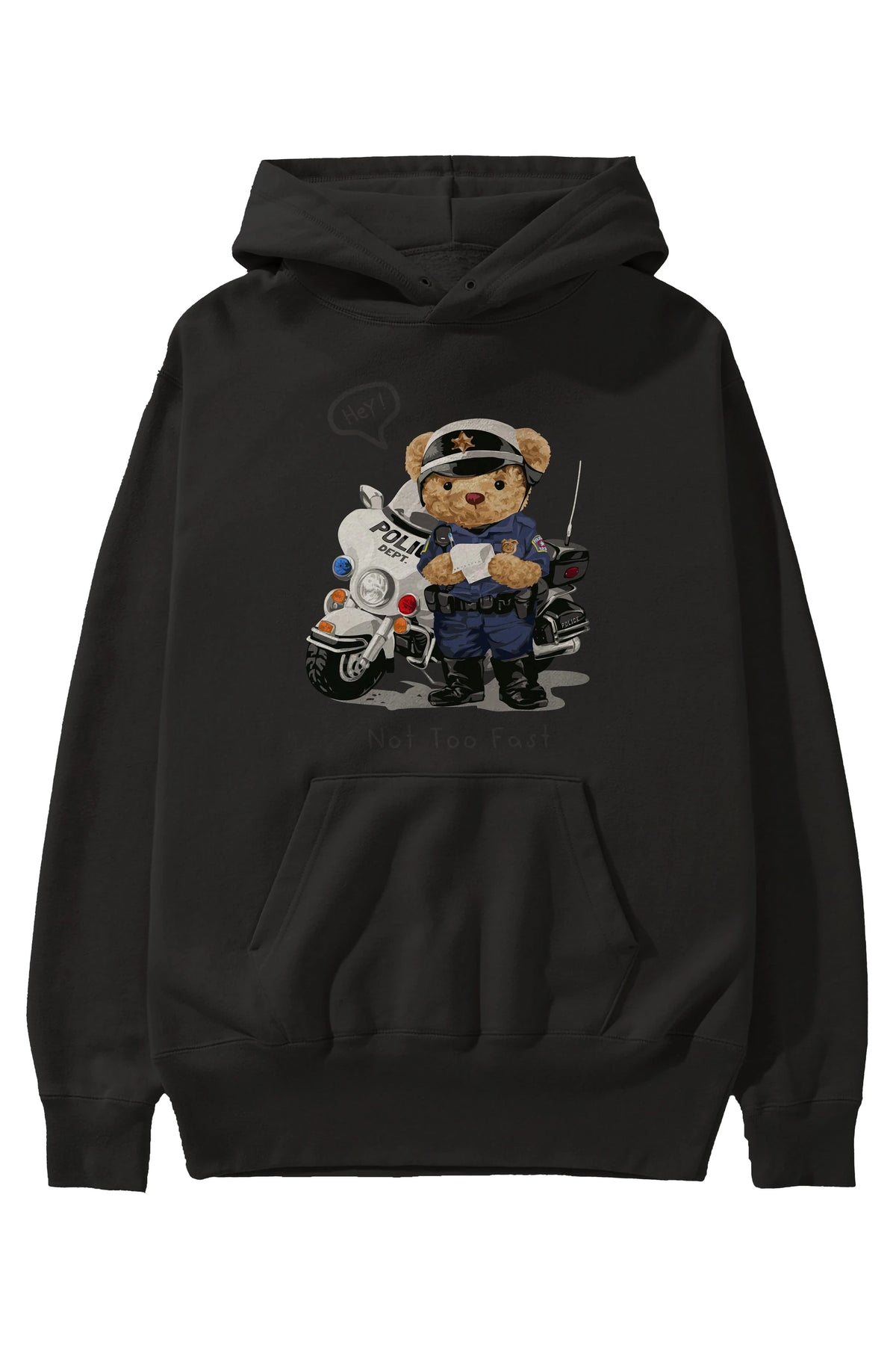 Teddy Bear Not Too Fast Ön Baskılı Hoodie Oversize Kapüşonlu Sweatshirt Erkek Kadın Unisex